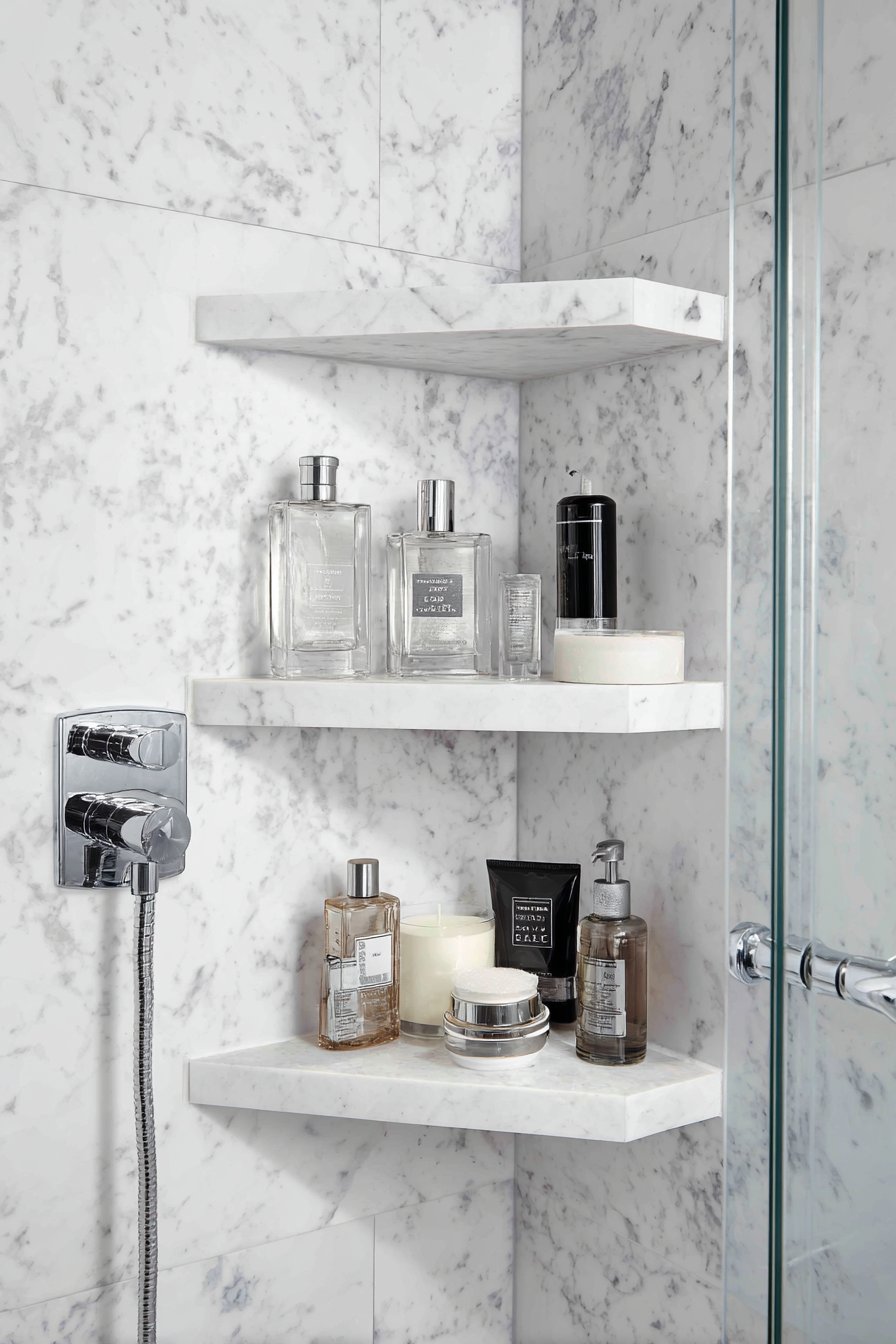 - Position corner niches on the wall opposite the showerhead to keep products away from direct water spray