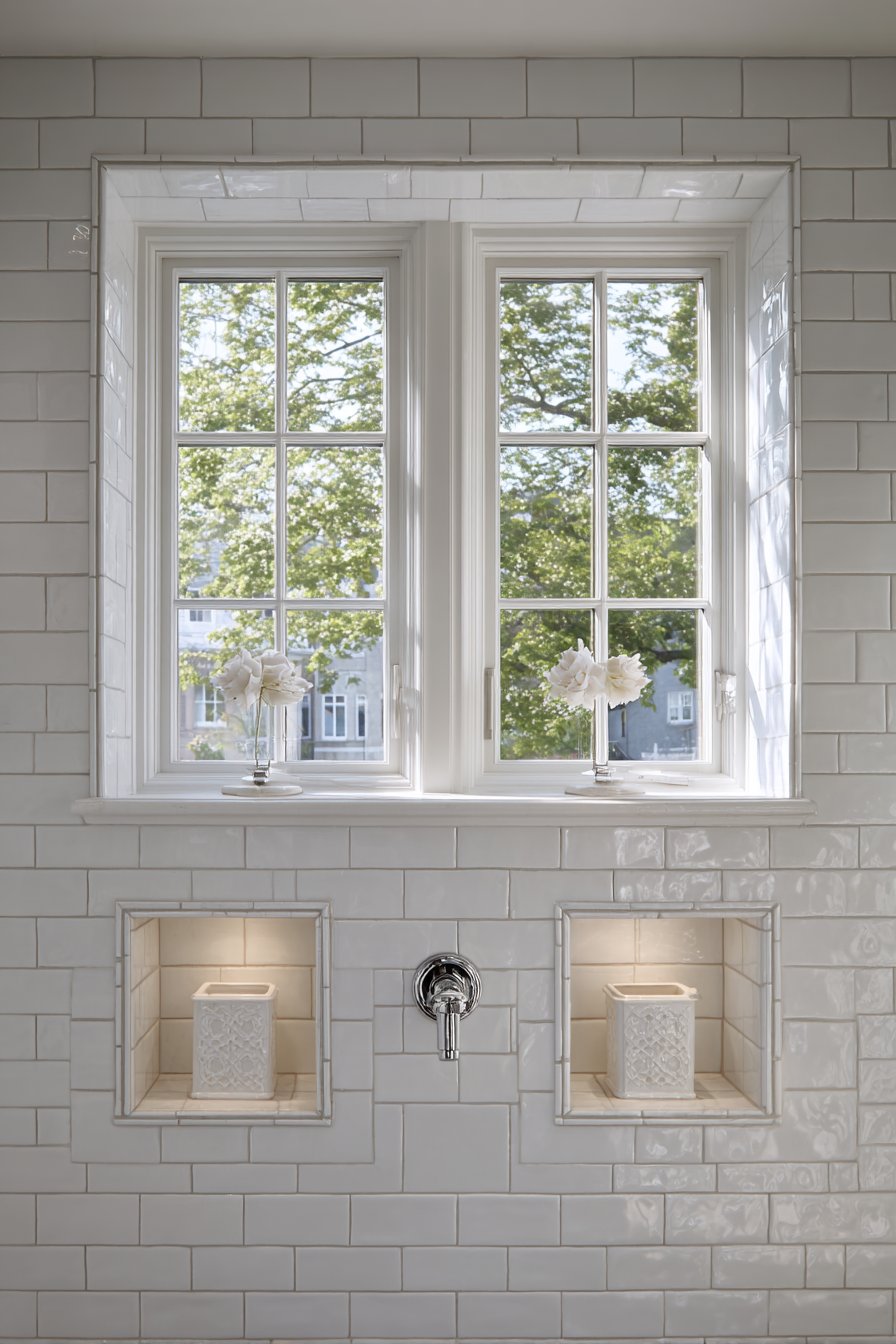 - Install niches at identical heights (measured precisely) to ensure the symmetry reads clearly