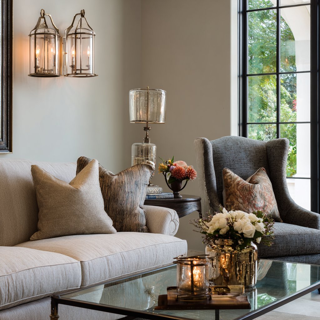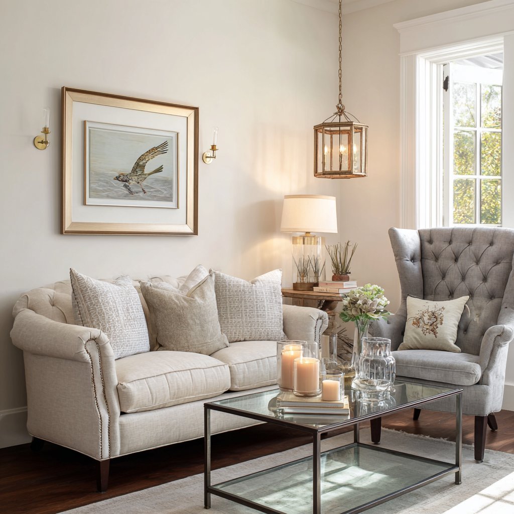 Key Design Tips: Combine rolled-arm traditional sofas with modern glass coffee tables to create successful transitional contrast and balance. Reupholster classic furniture forms in contemporary fabrics to give traditional pieces current relevance and visual interest. Choose neutral walls as versatile backdrops that allow both traditional and modern accessories to coexist harmoniously. Mix metal finishes in fixtures and hardware to add visual complexity appropriate to transitional eclecticism. Balance traditional comfort with contemporary clean lines to create timeless rooms that transcend specific eras.