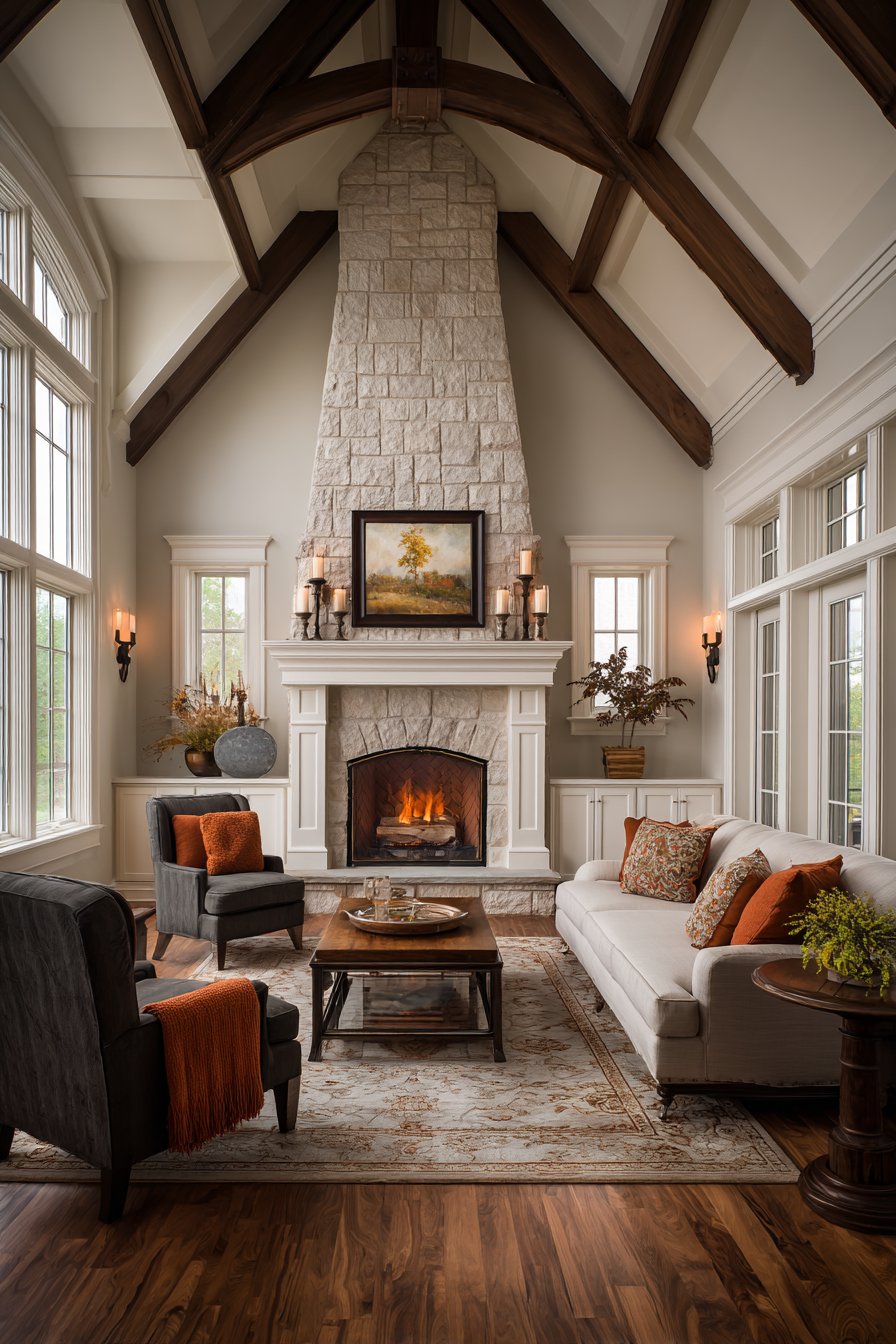 Key Design Tips: Style fireplace mantels with mirrors to reflect light and create the illusion of greater space. Arrange seating in U-shape facing fireplace to create intimate gathering spaces centered around the hearth. Install built-in cabinetry flanking fireplaces to add storage while creating architectural symmetry. Add wall sconces that complement fireplace glow to provide layered ambient lighting. Change mantel decorations seasonally to keep the focal point fresh and celebrate the changing year.