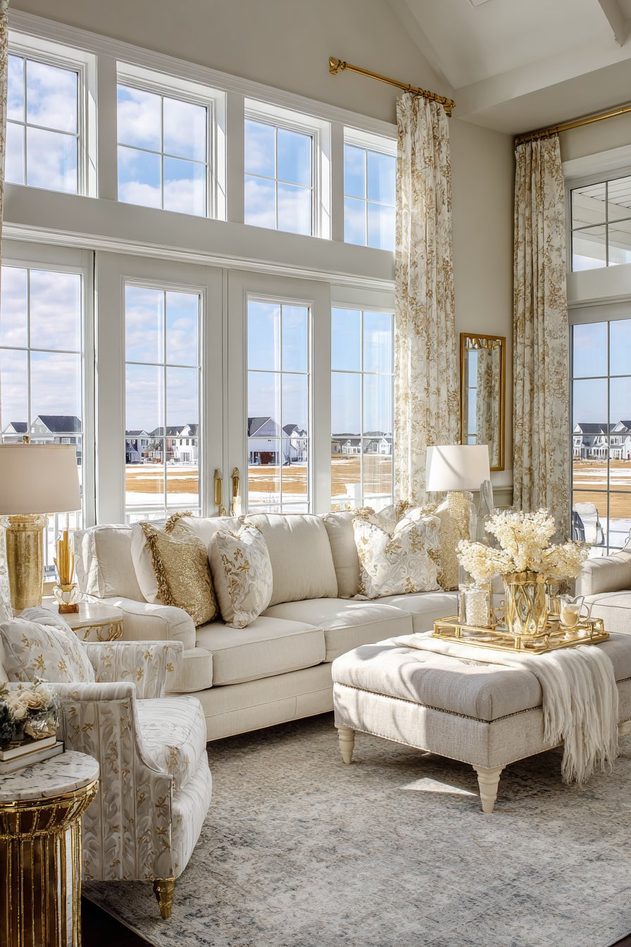 Silk throw pillows add subtle pattern and additional textural luxury, their sheen catching light and adding visual interest without disrupting the room’s sophisticated restraint. Every element works together to create an environment that honors guests and special occasions while remaining comfortable enough for extended entertaining. This formal sitting room demonstrates that elegance needn’t be stuffy—it can be both beautiful and welcoming.