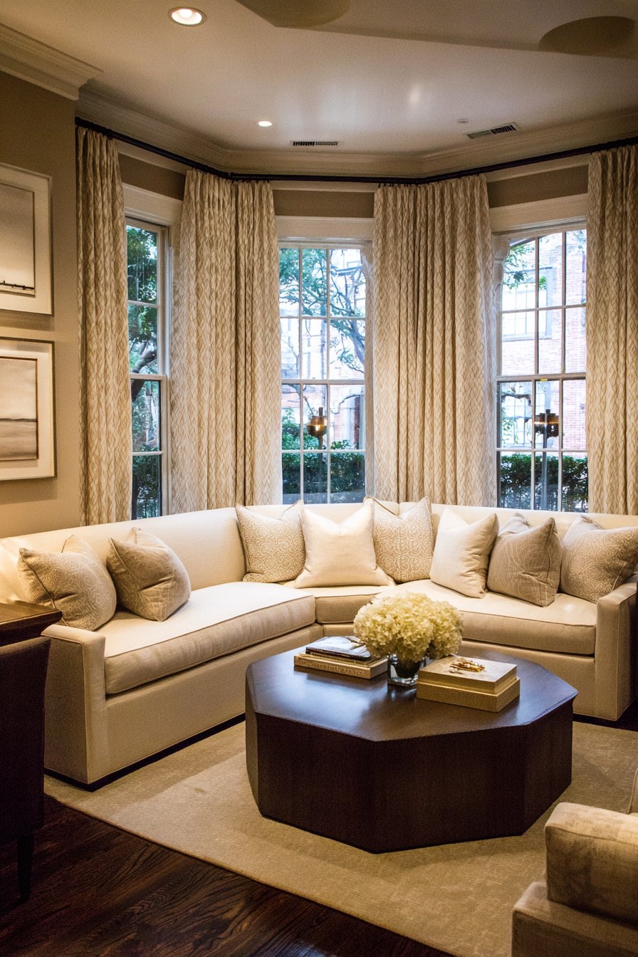 Celebrating natural illumination, this sitting room positions furniture and makes material choices specifically to capitalize on available daylight. Large windows receive minimal treatment—sheer curtains provide privacy when needed while allowing maximum light penetration during the day. Furniture arranges to take advantage of changing sun patterns throughout the day, perhaps placing reading chairs where afternoon light falls or positioning the sofa to avoid morning glare.