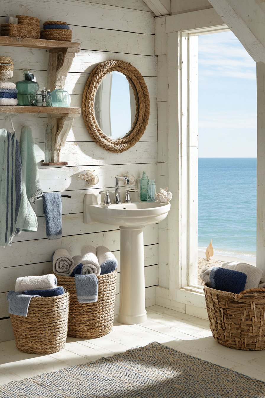 - Incorporate rope details on mirrors or towel holders to reinforce coastal themes without resorting to obvious seashell motifs