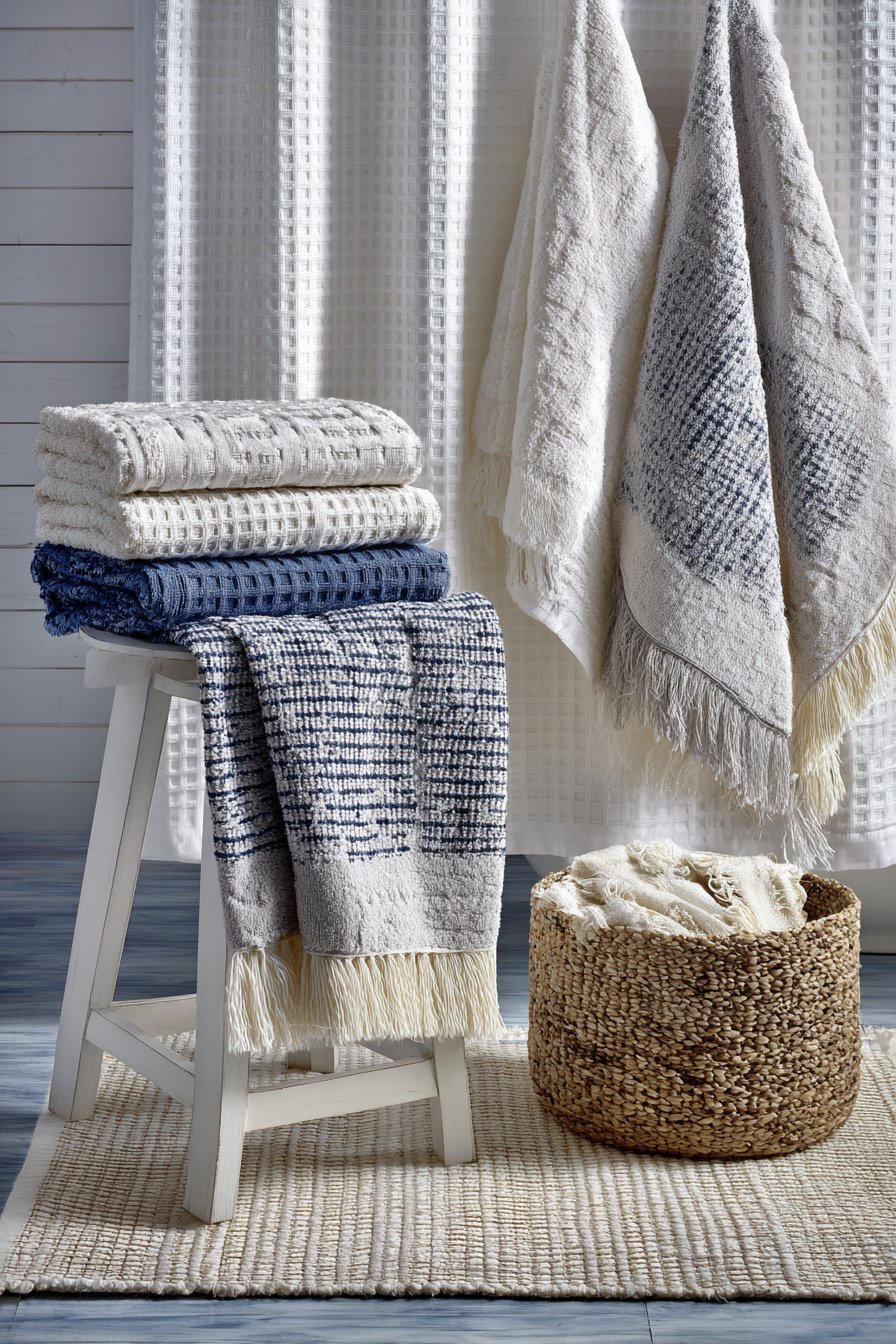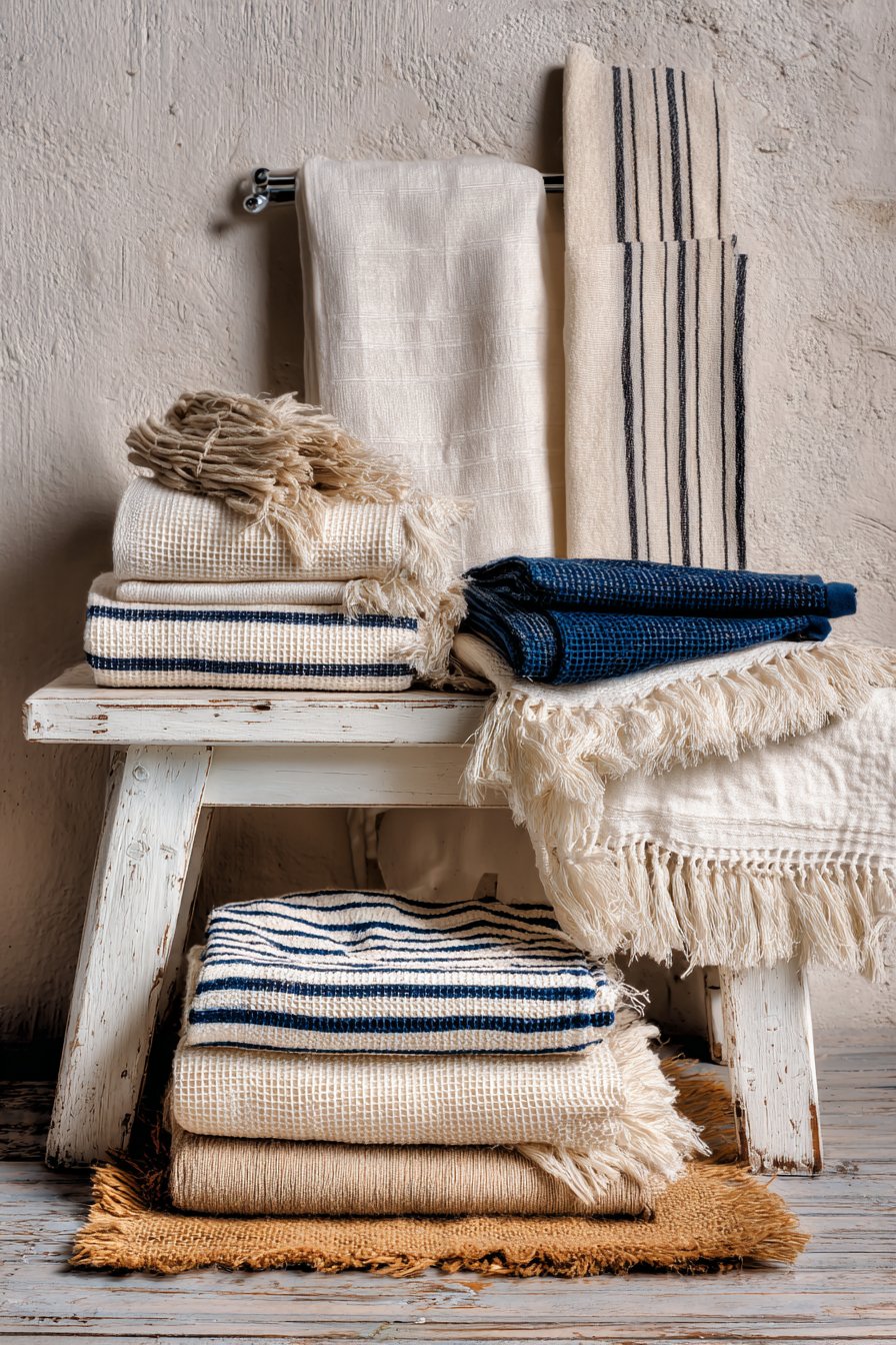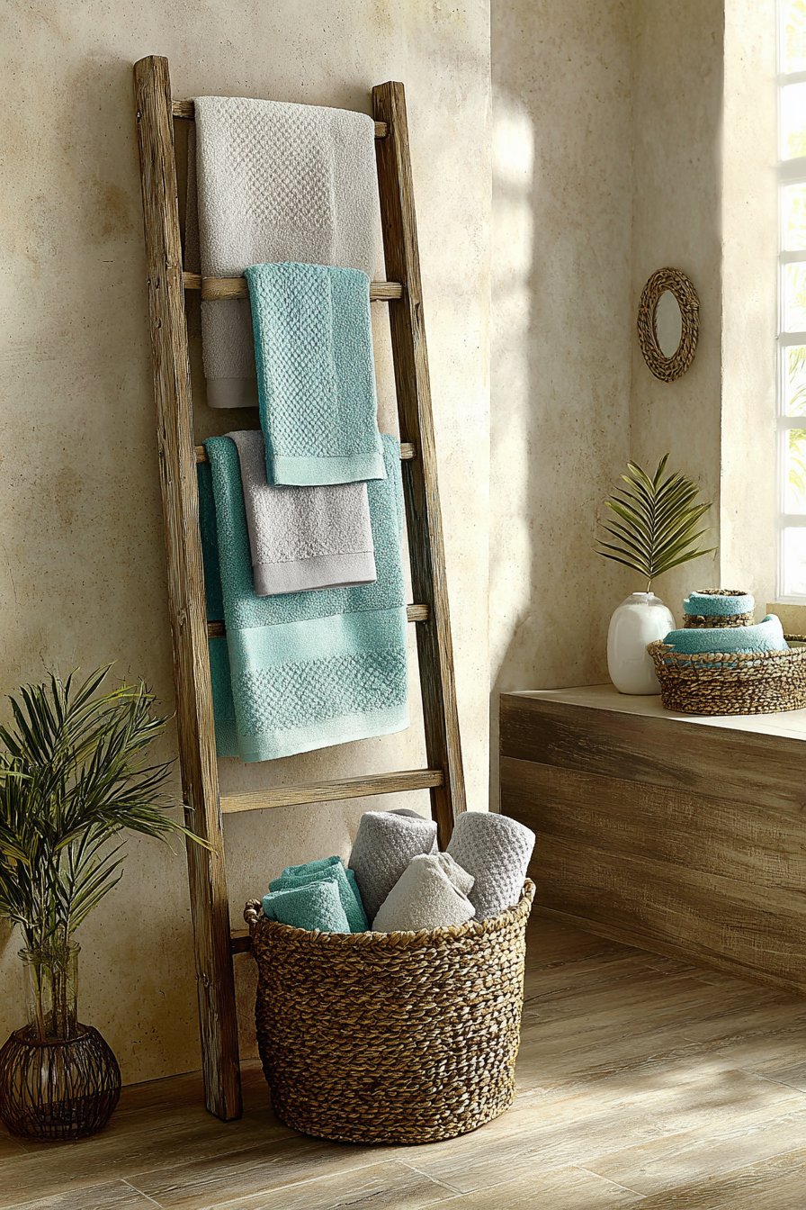 - Vary towel textures (waffle-weave, terry, linen) to create visual and tactile interest