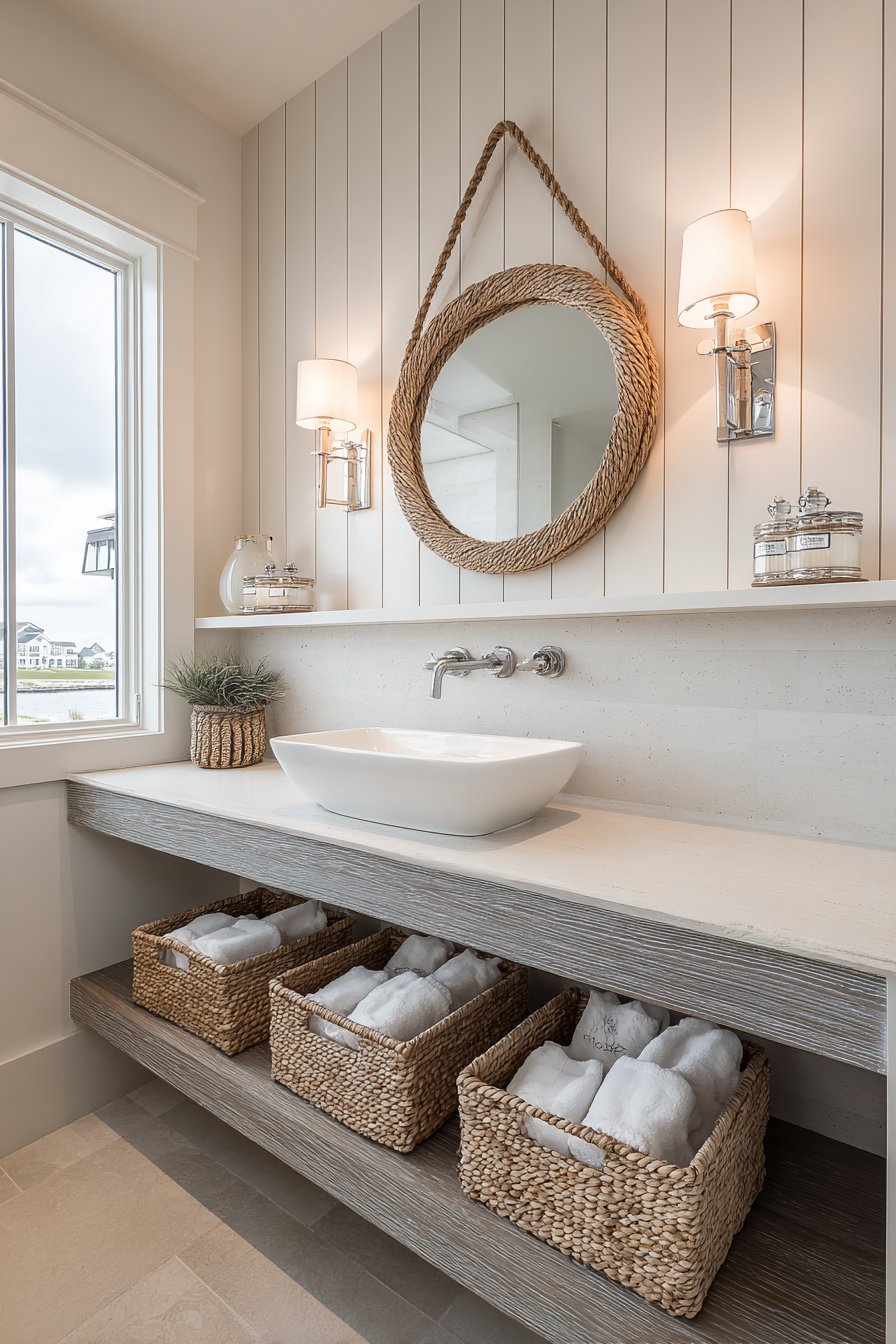 - Add rope details to mirrors or other accessories for subtle nautical character