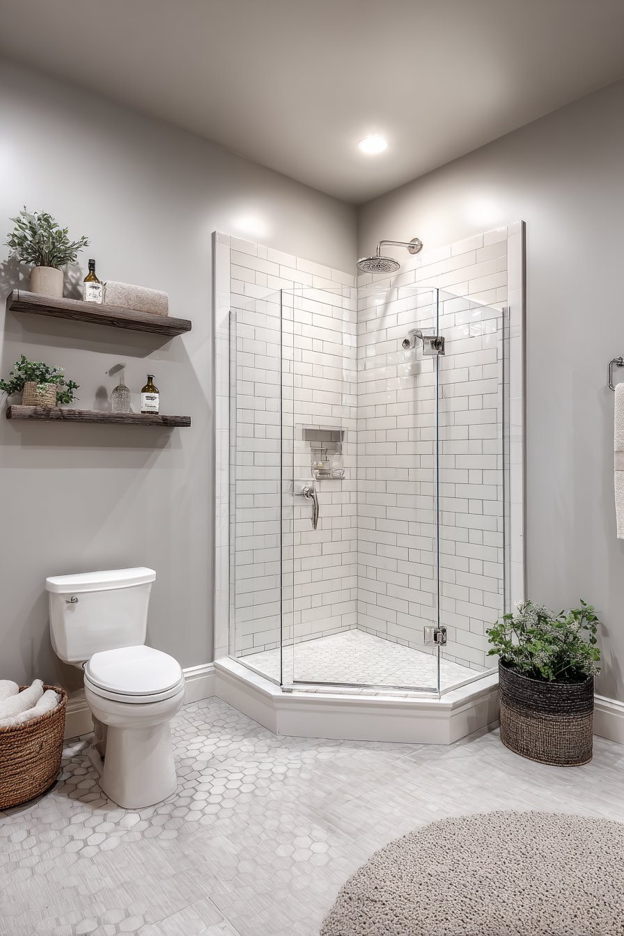 - Add horizontal accent stripes at eye level to visually widen narrow shower spaces