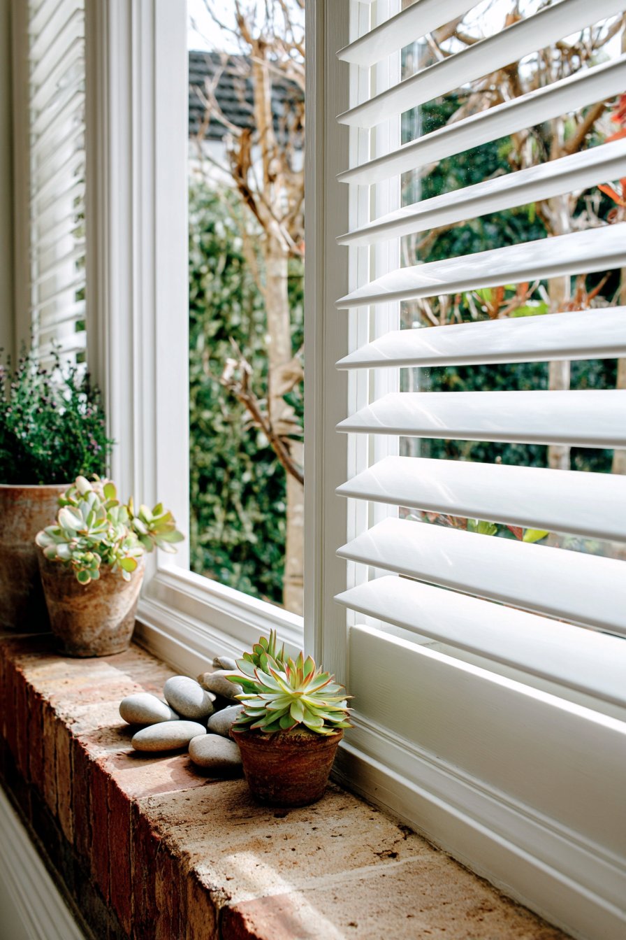 - Add one living plant as a focal point rather than multiple competing greenery pieces