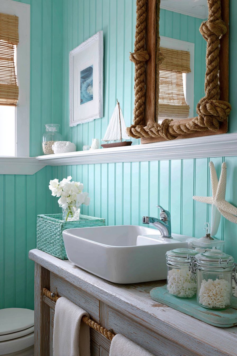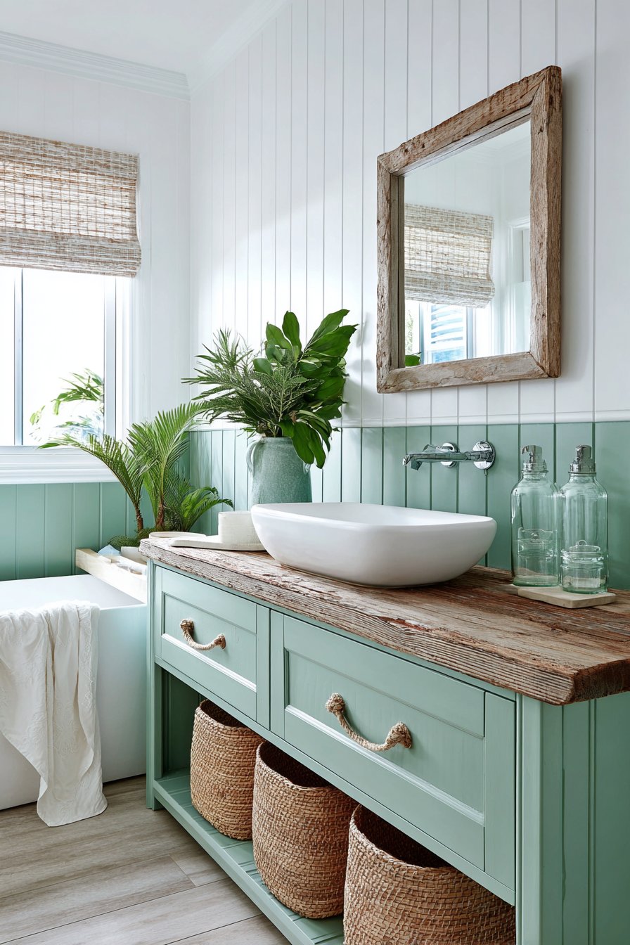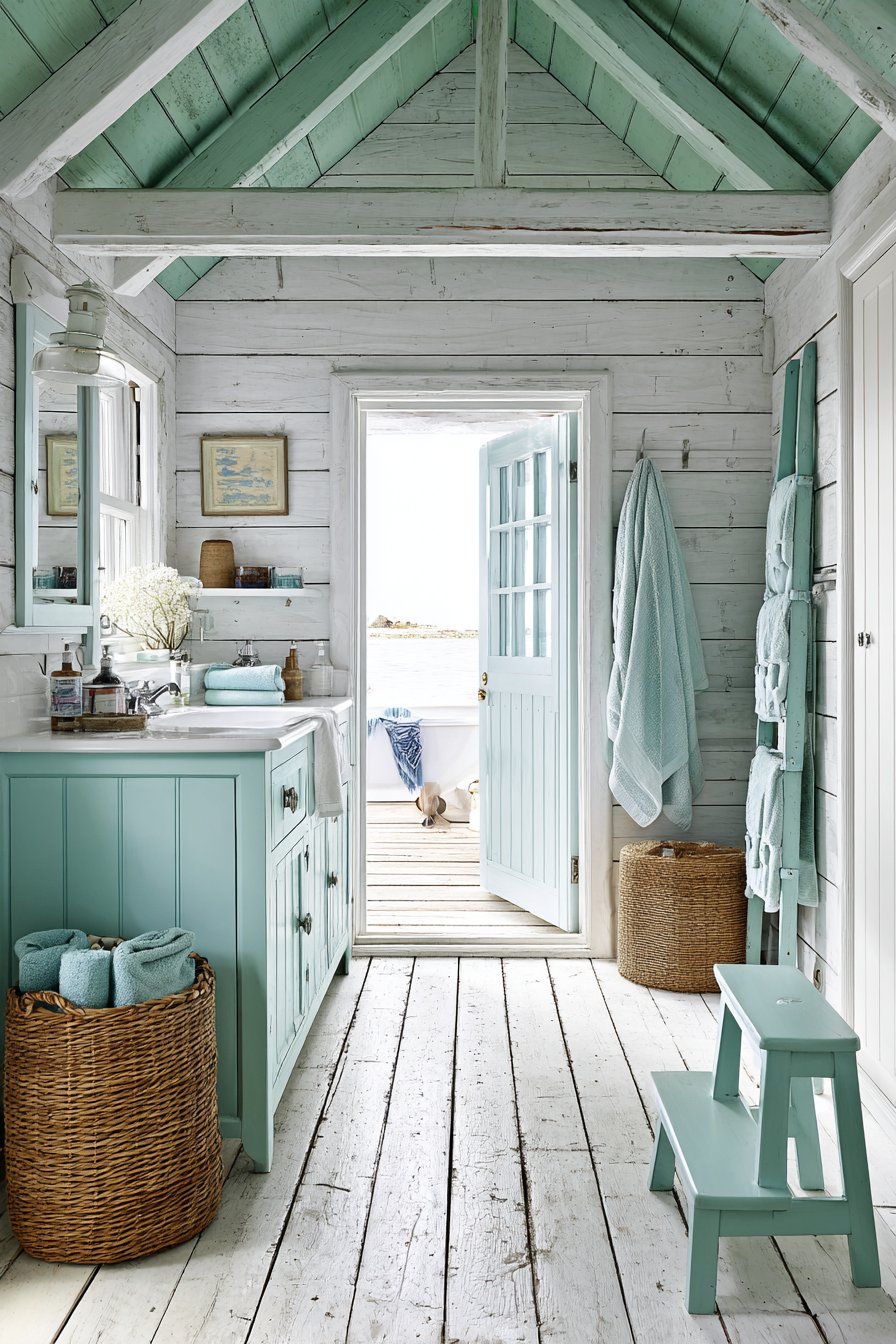 - Paint lower walls in seafoam, upper walls in white for breezy appeal
