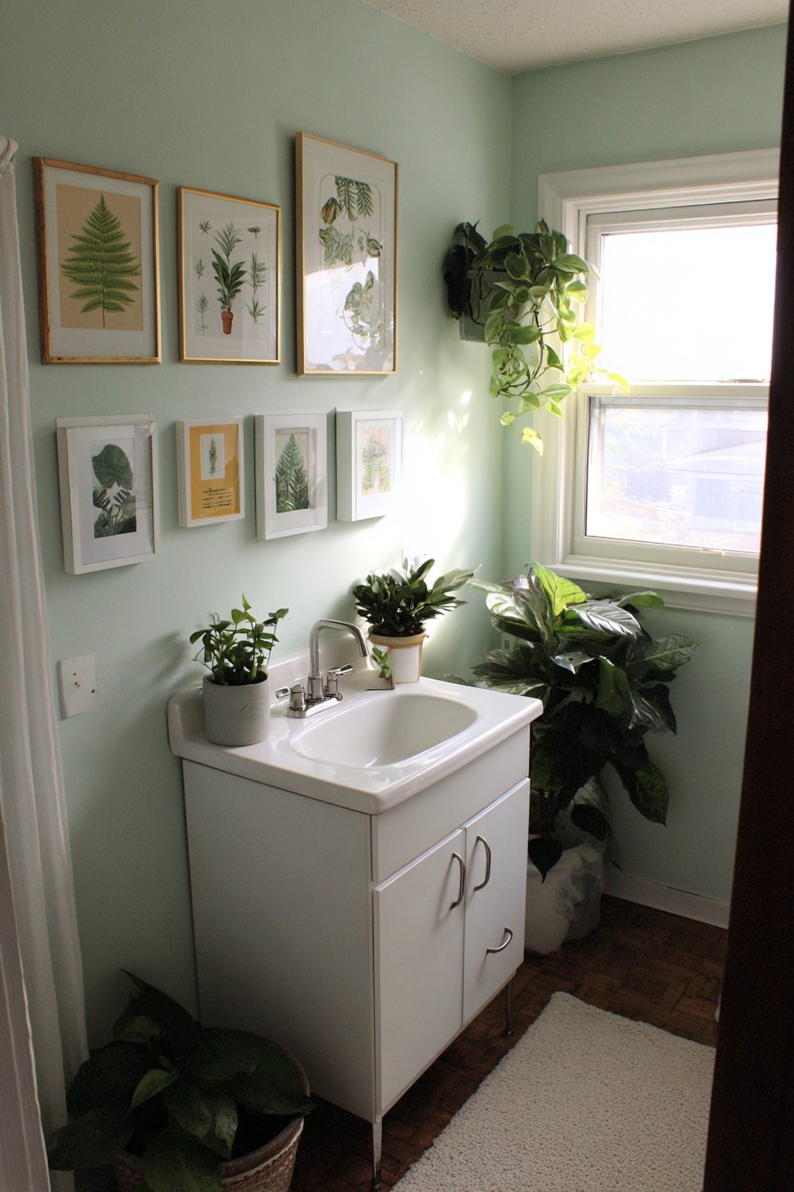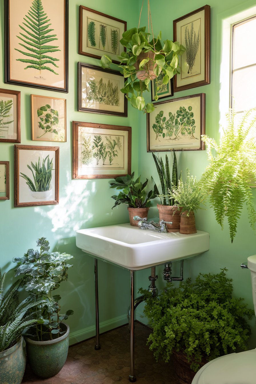 - Use mint or pale green walls as subtle backdrops for botanical art