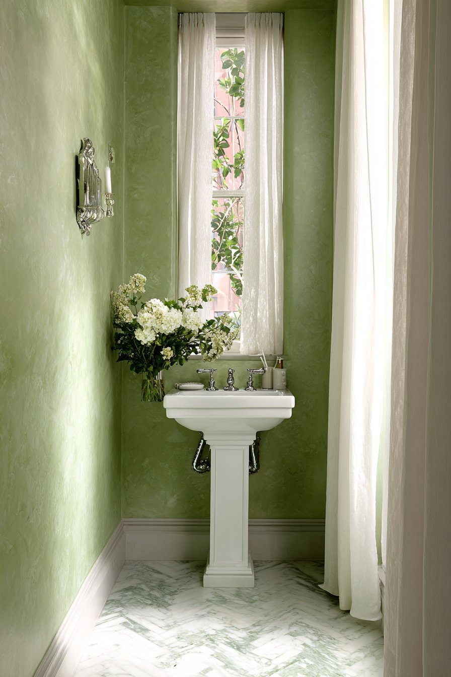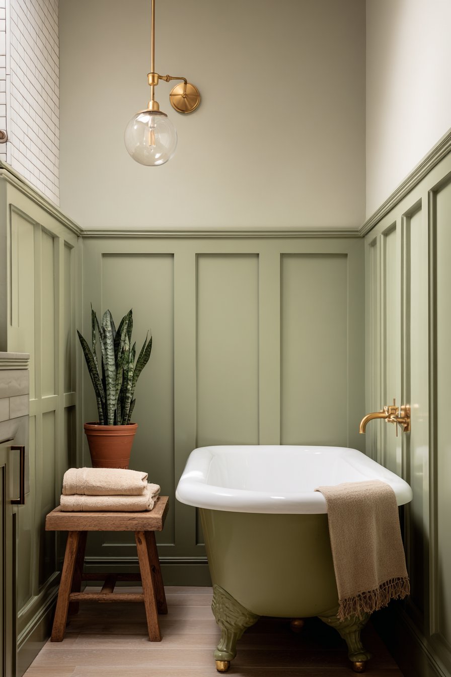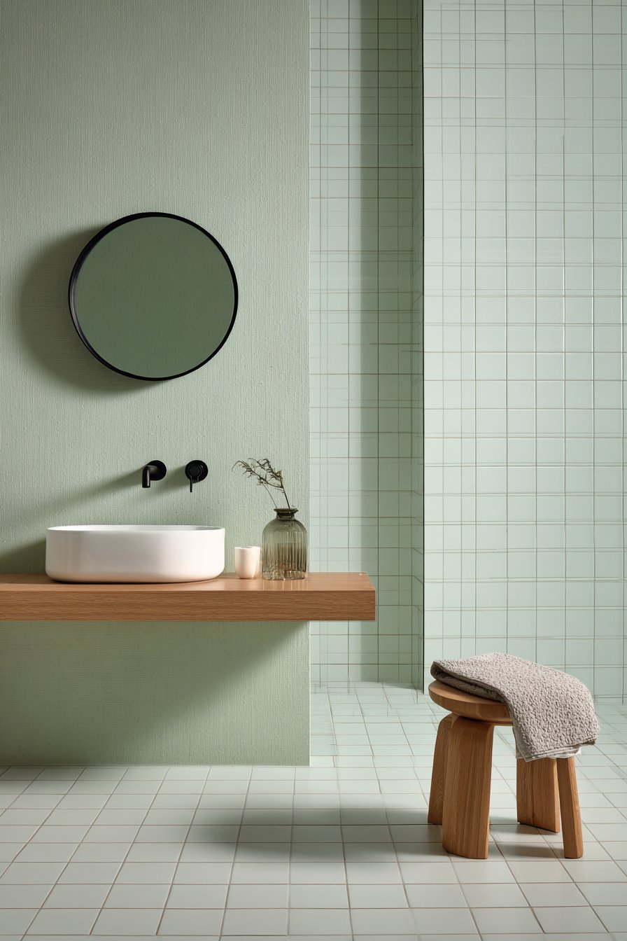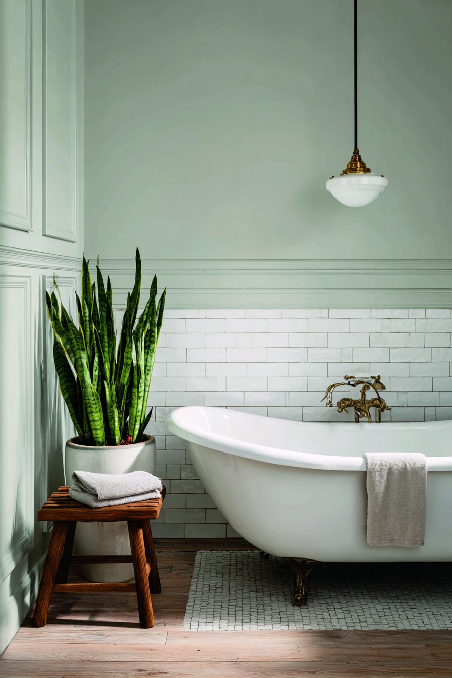 - Choose celadon green for a sophisticated, timeless bathroom color
