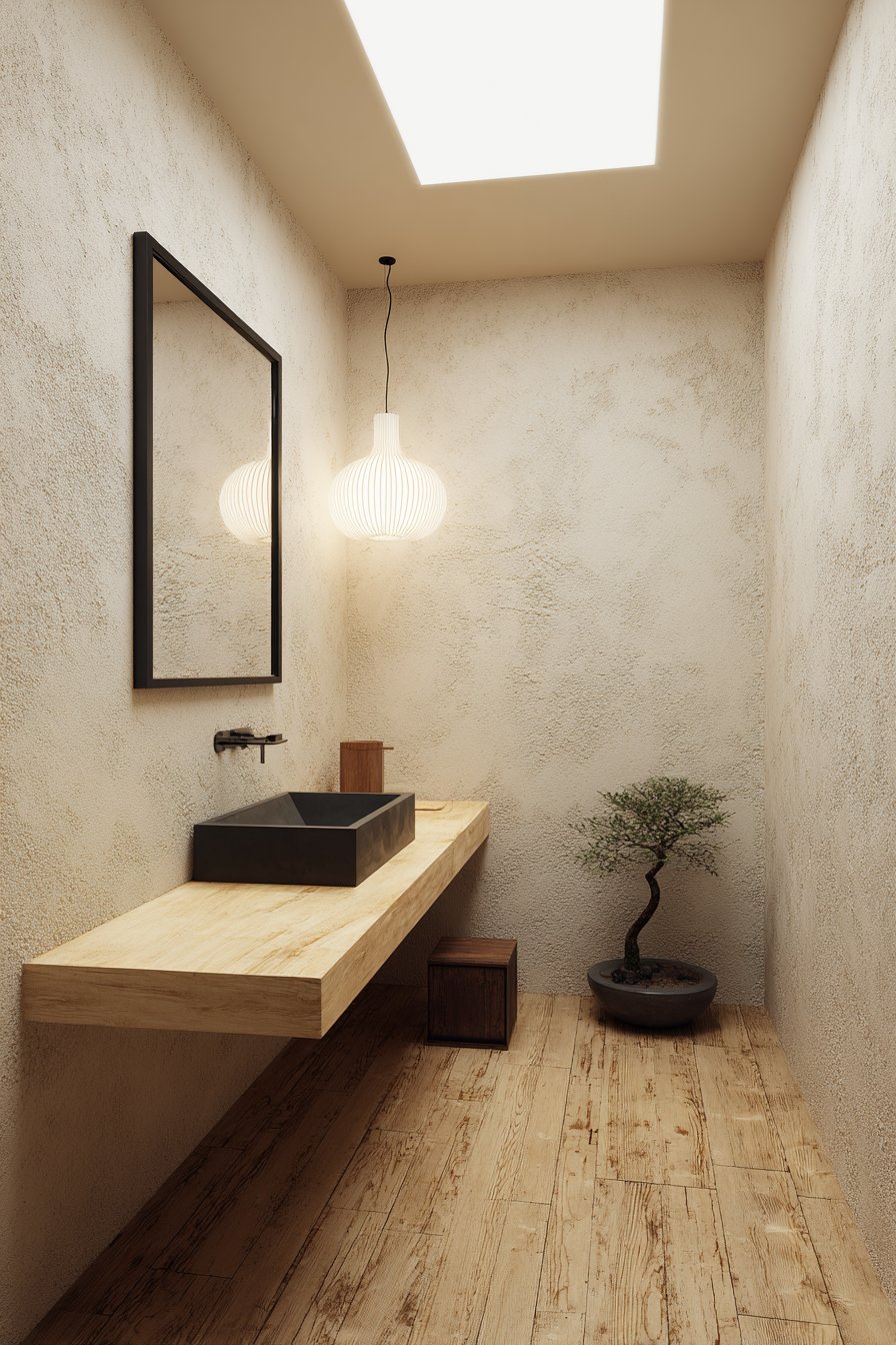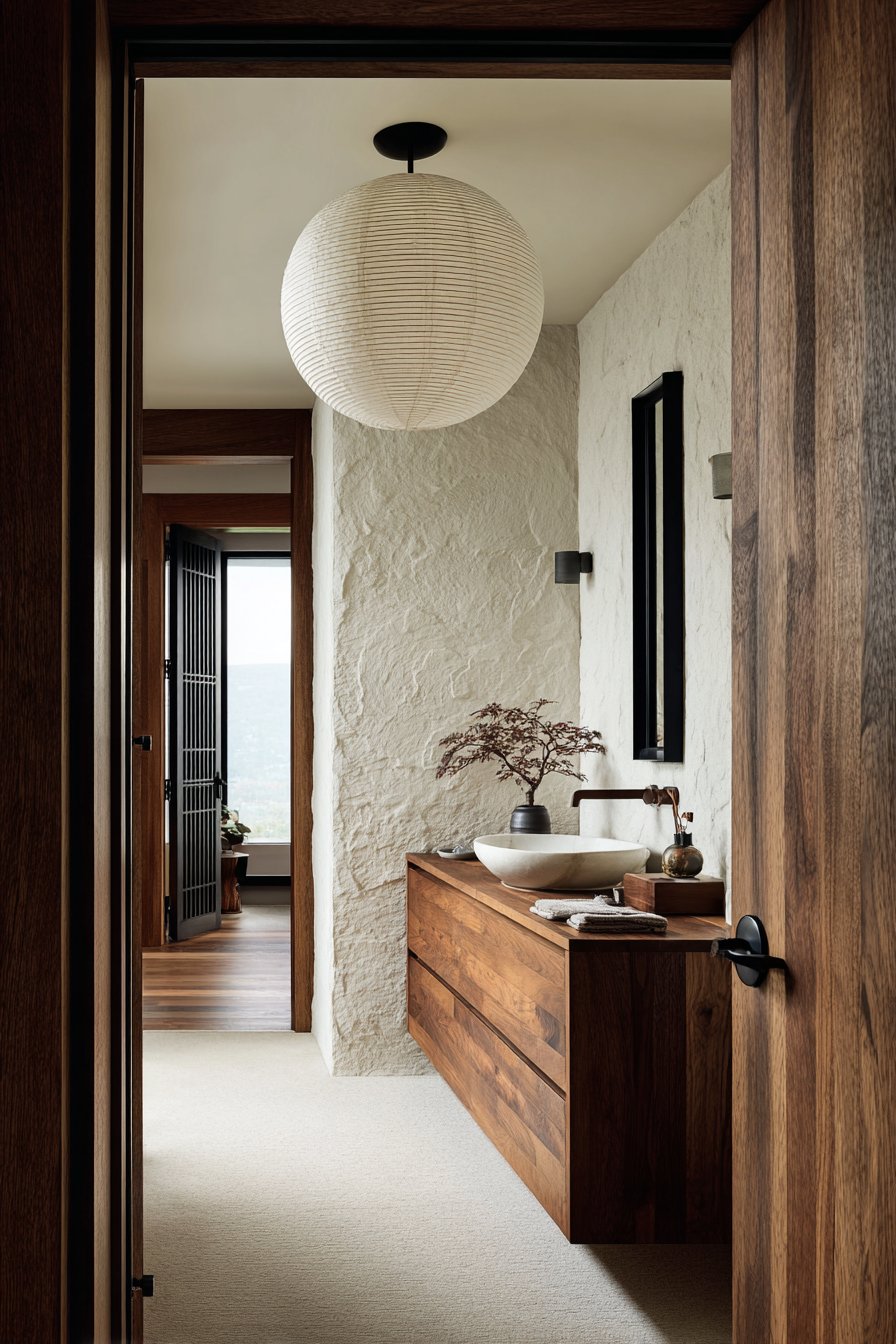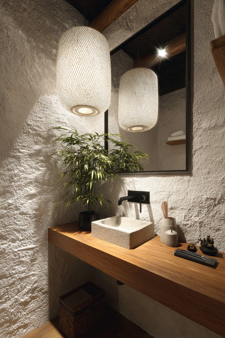 Style versatility across these designs ensures that every homeowner can find inspiration regardless of their aesthetic preferences. The Scandinavian clean white bathroom appeals to minimalists who value simplicity and natural light, while the colorful eclectic powder room celebrates those who embrace personality and collected charm. The industrial exposed brick bathroom serves urban dwellers who appreciate raw materials and utilitarian beauty, while the farmhouse vintage powder room satisfies those who love rustic character and reclaimed elements. The mid-century modern walnut bathroom offers retro enthusiasts authentic period design, while the Japandi zen powder room blends Eastern and Northern design philosophies for ultimate serenity.