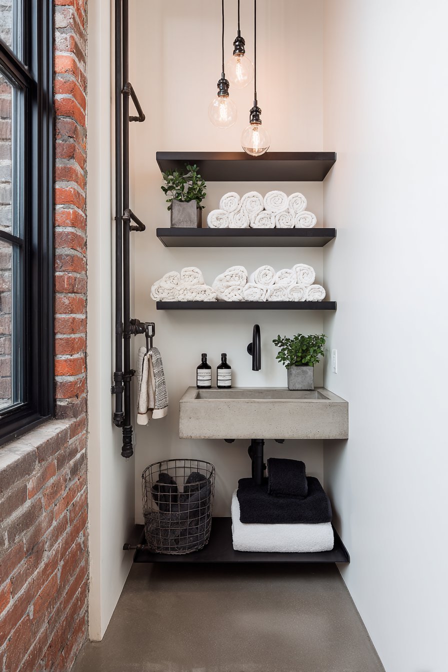 - Display fresh towels on open shelving for both functionality and decorative appeal