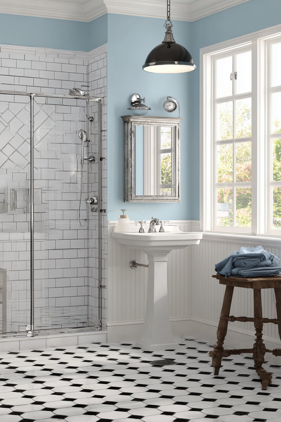 - Use wall-mounted faucets to enhance vintage aesthetic