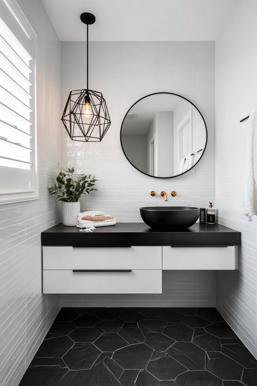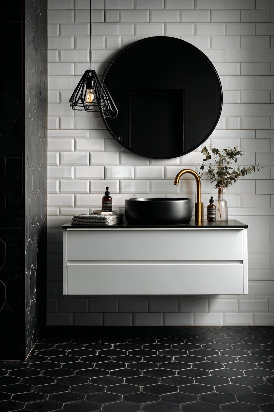 - Use matte black fixtures for striking contrast and modern sophistication