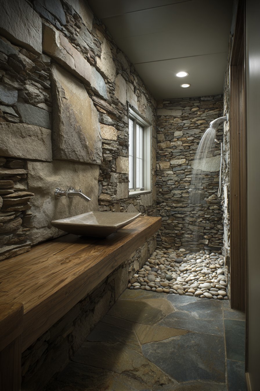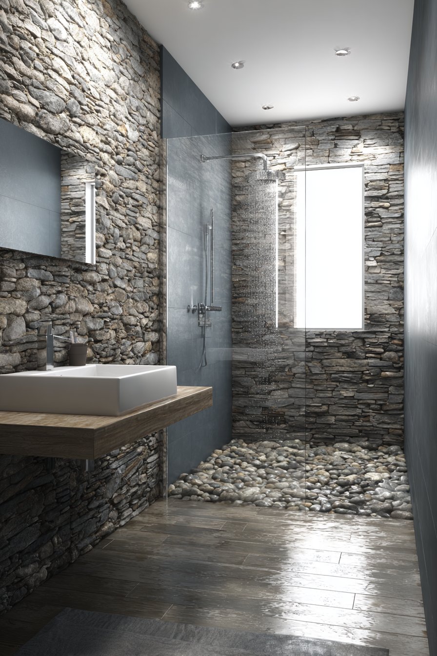 - Use river rock tiles in shower areas for natural texture and foot massage