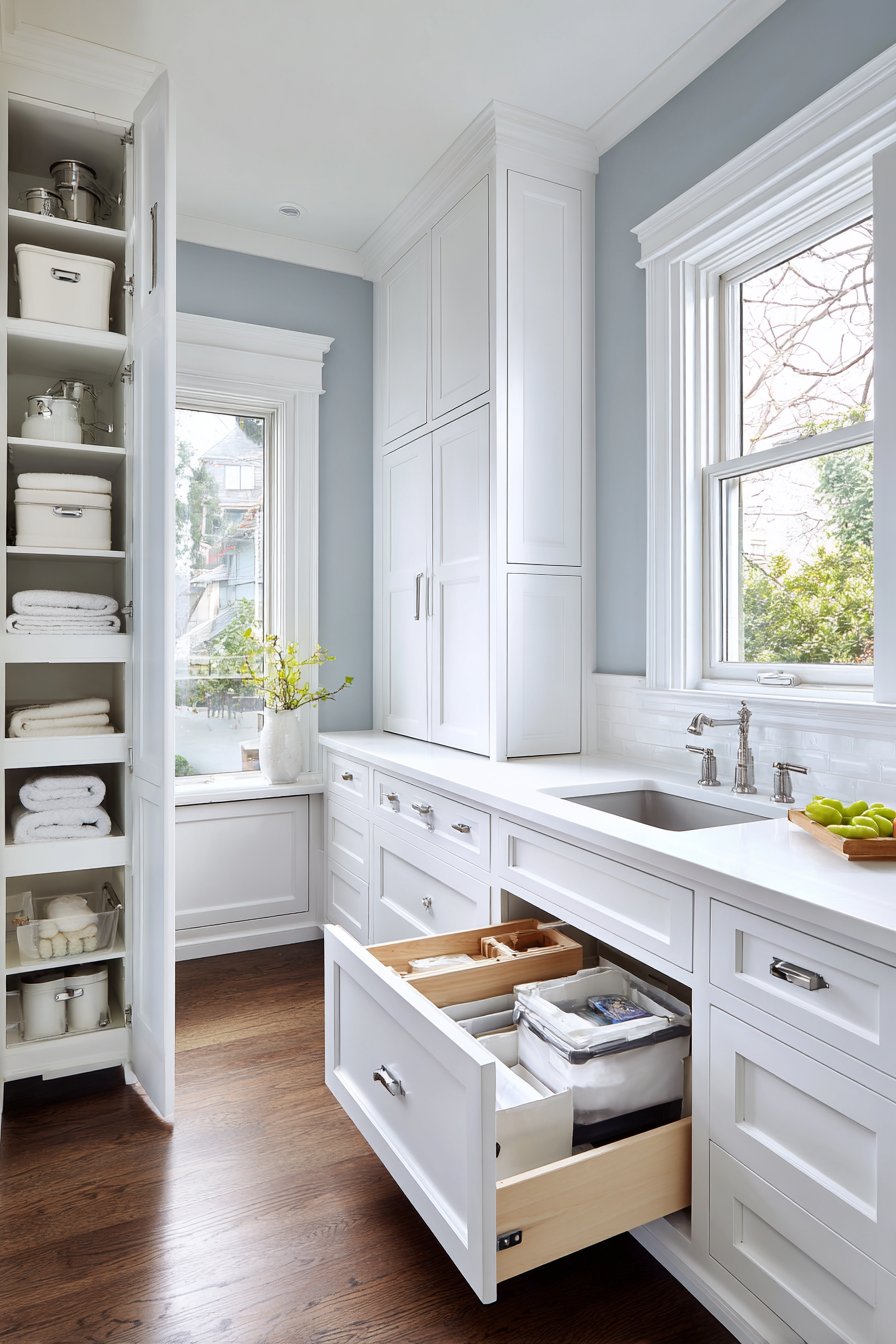 - Include pull-out hampers and drawer dividers for organized storage