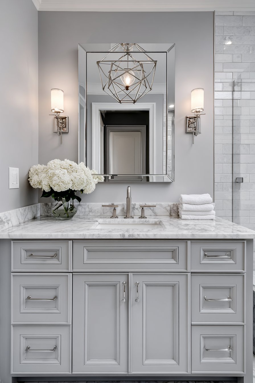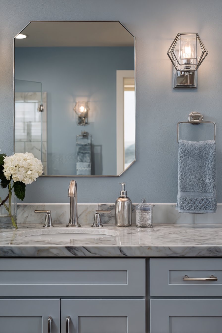 - Select chrome fixtures to reflect light and maintain modern aesthetic
