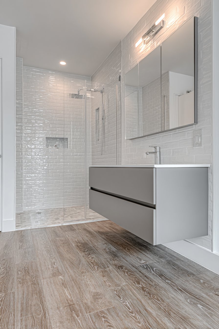 - Install a floating vanity to create the illusion of more floor space and easier cleaning access