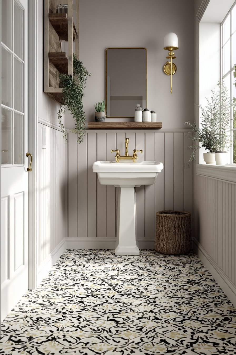 5. Charming Patterned Floor Half-Bath