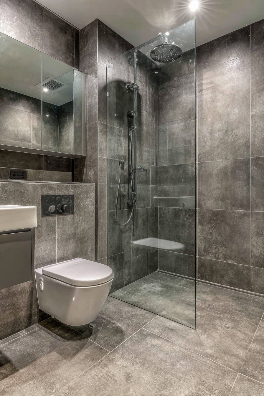 - Use non-slip porcelain tiles throughout for safety without sacrificing style