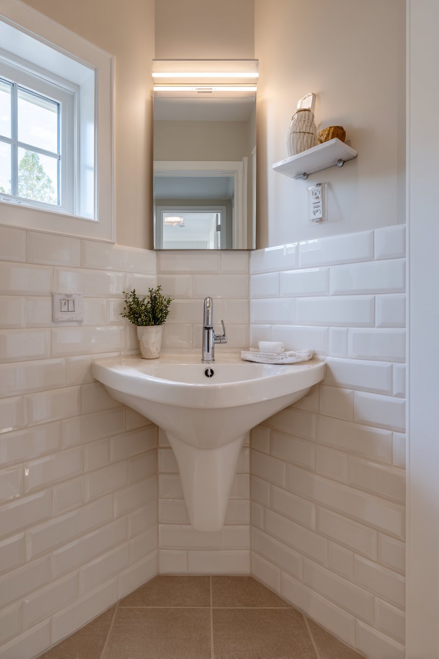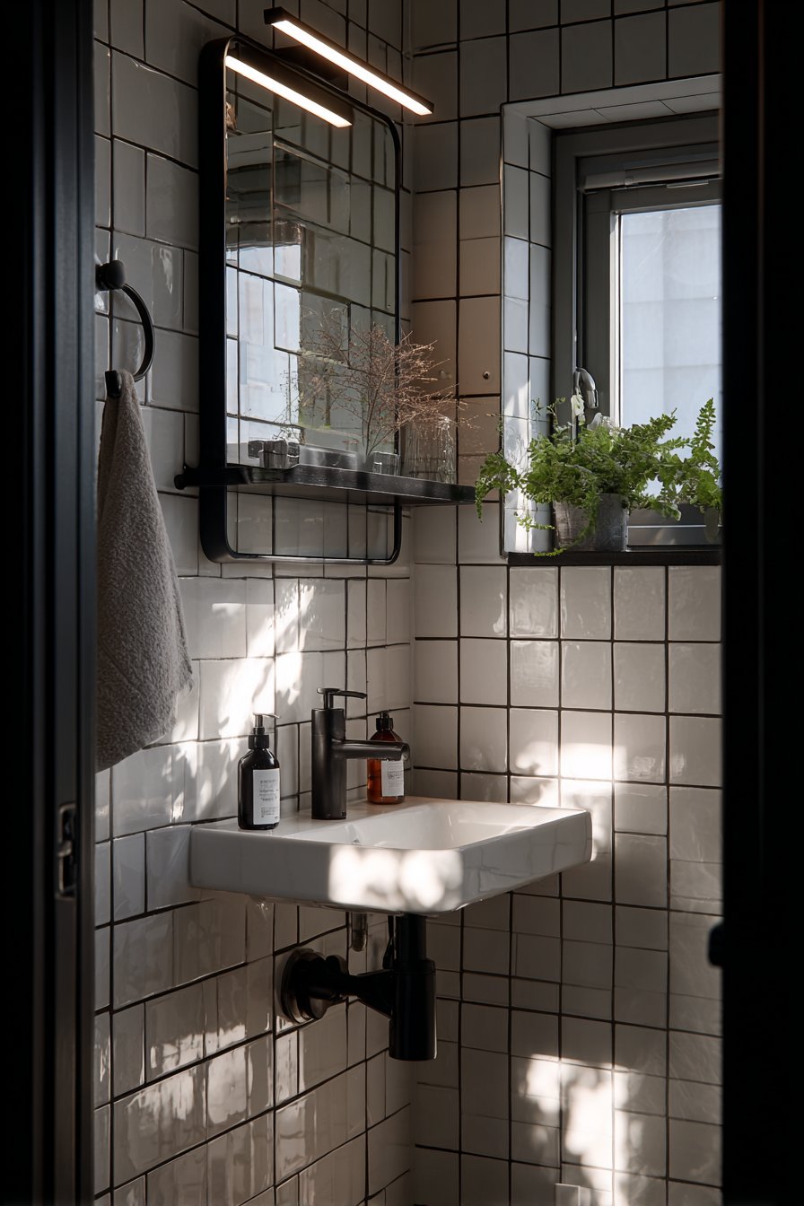 • Use light-reflective materials like glossy subway tiles to amplify available light