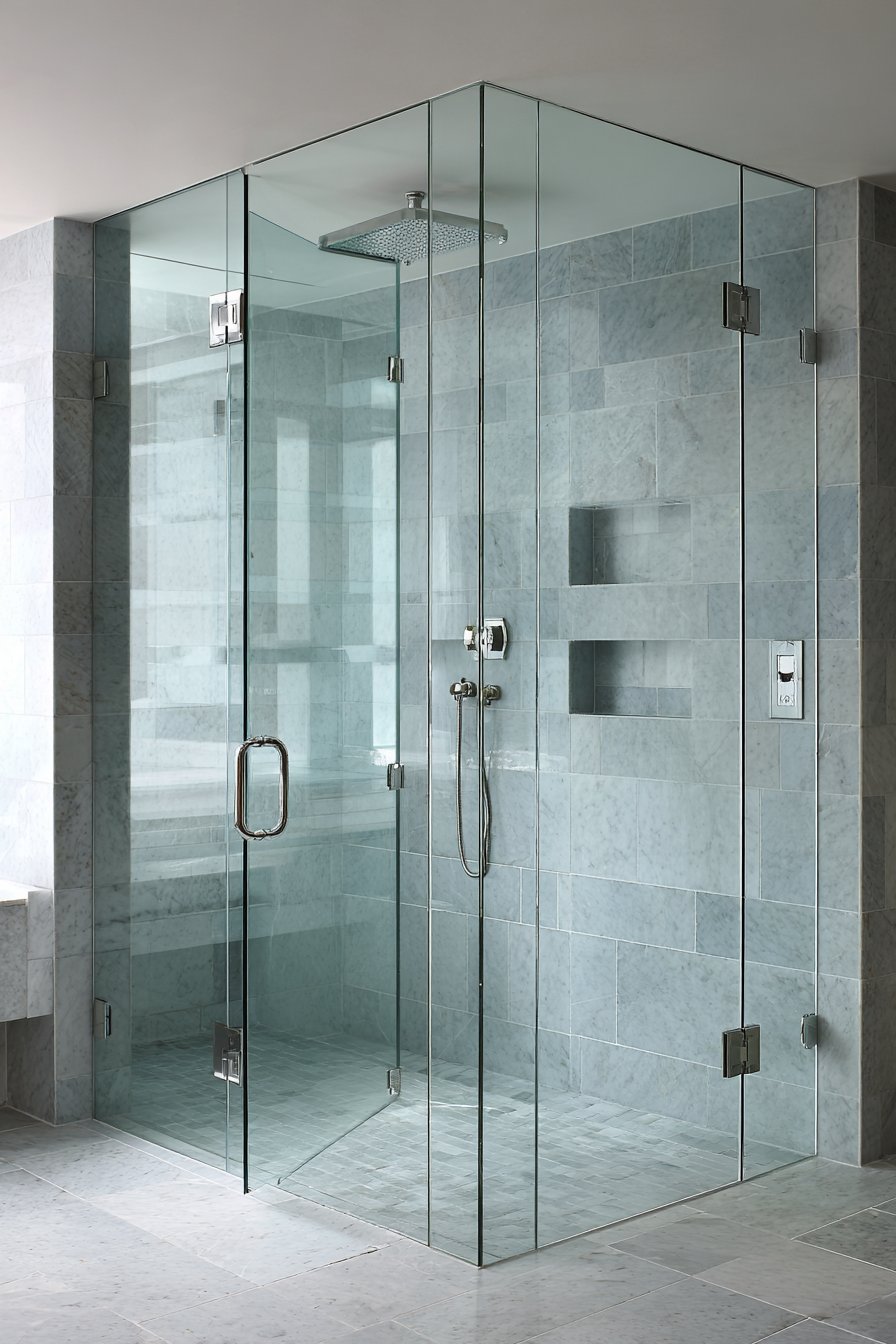 • Invest in high-quality frameless glass that won’t require bulky frames or tracks