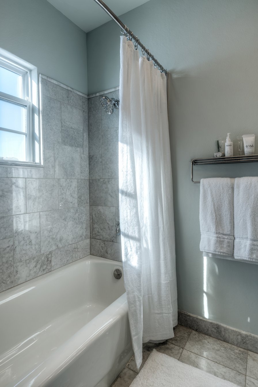 • Install a linear drain rather than a centered drain for a more streamlined look
