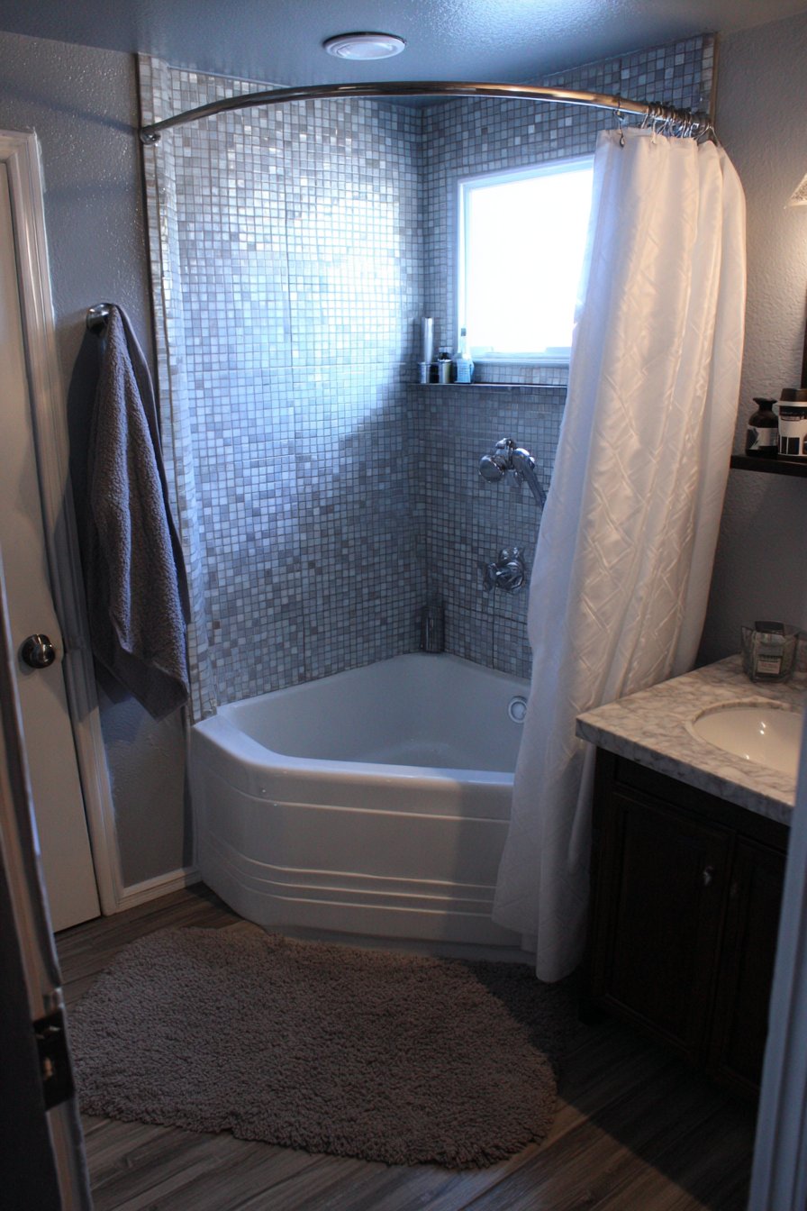 Corner installation represents one of the oldest tricks for maximizing space in tiny bathrooms, and the neo-angle shower enclosure perfects this approach with its distinctive five-sided design that fits neatly into corners while providing more interior shower space than traditional square corner units. In a 40-square-foot bathroom, this configuration claims corner real estate that might otherwise remain underutilized, while the angled door provides easier entry than corner units with doors that open into the already-limited bathroom space.