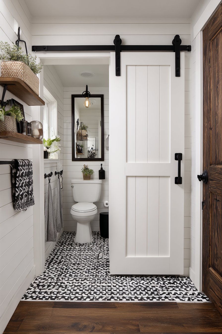 • Choose barn door hardware rated for bathroom humidity to prevent corrosion and degradation