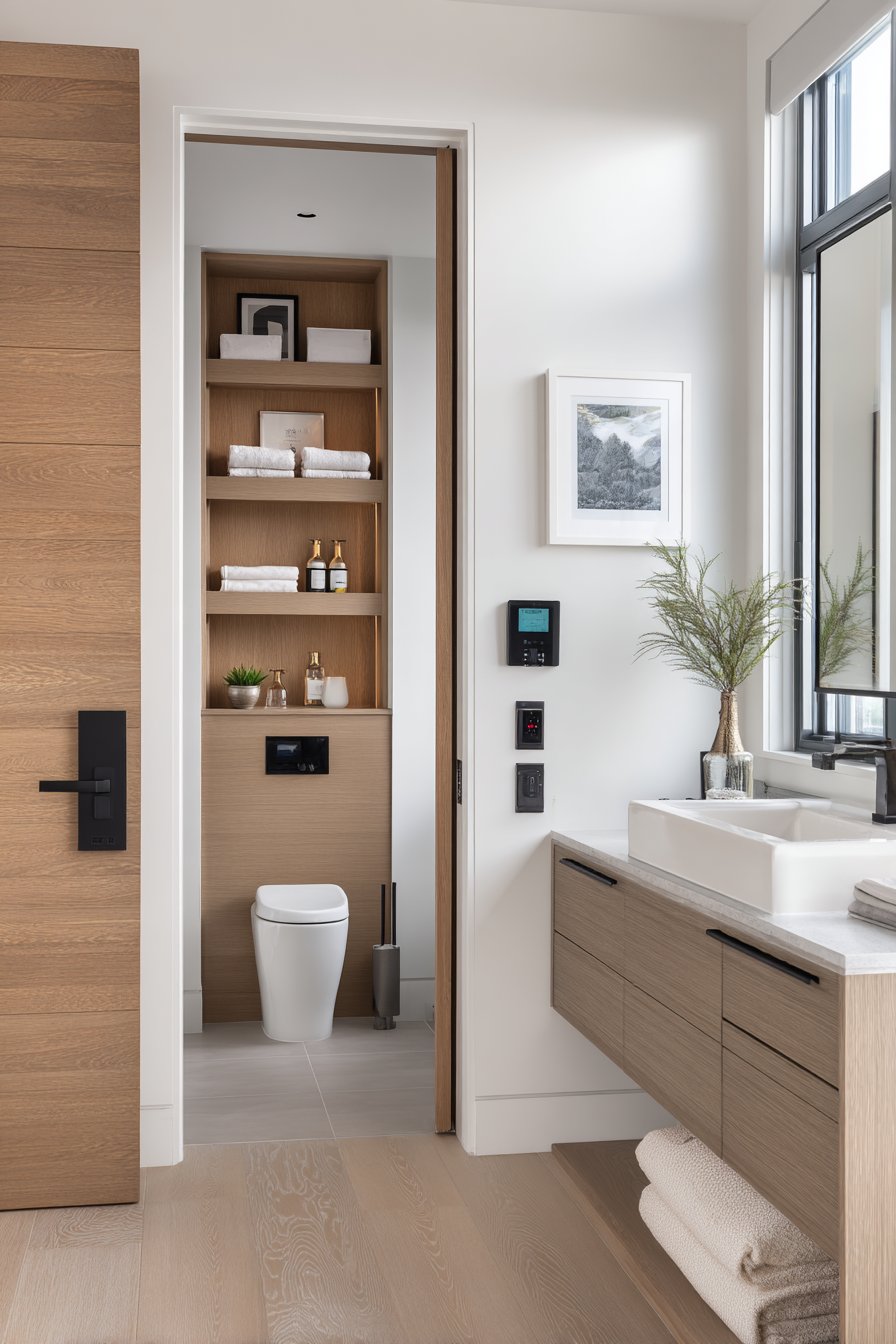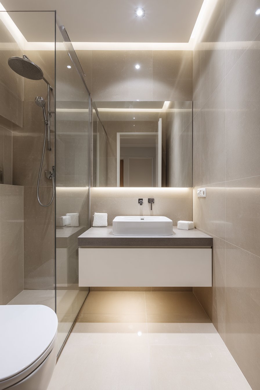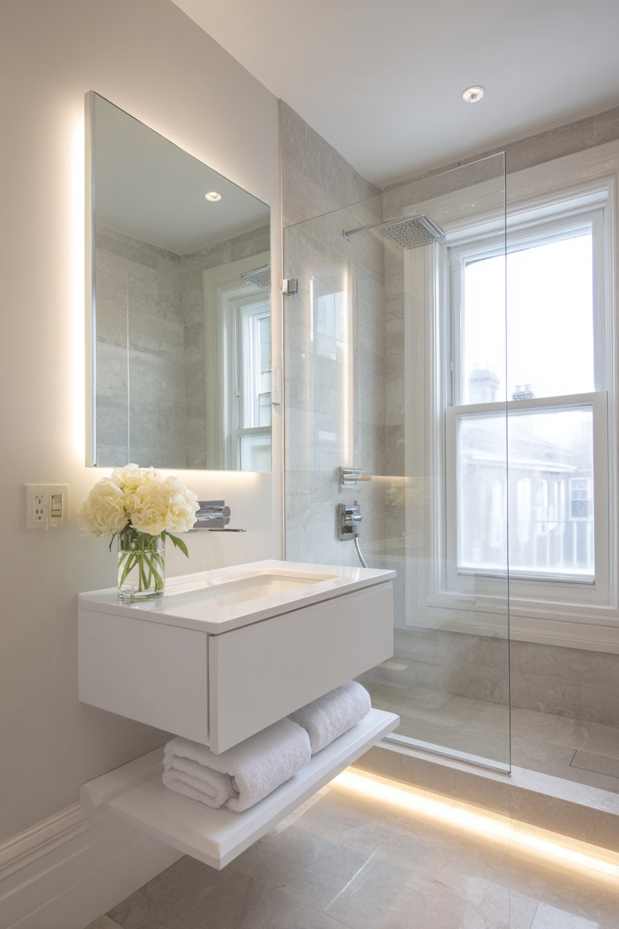 • Consider adding a subtle LED strip beneath the toilet for dramatic nighttime illumination