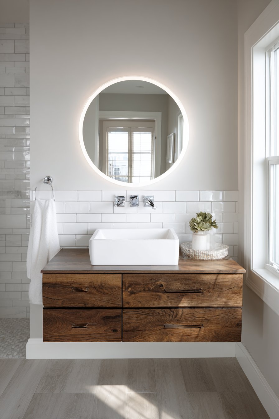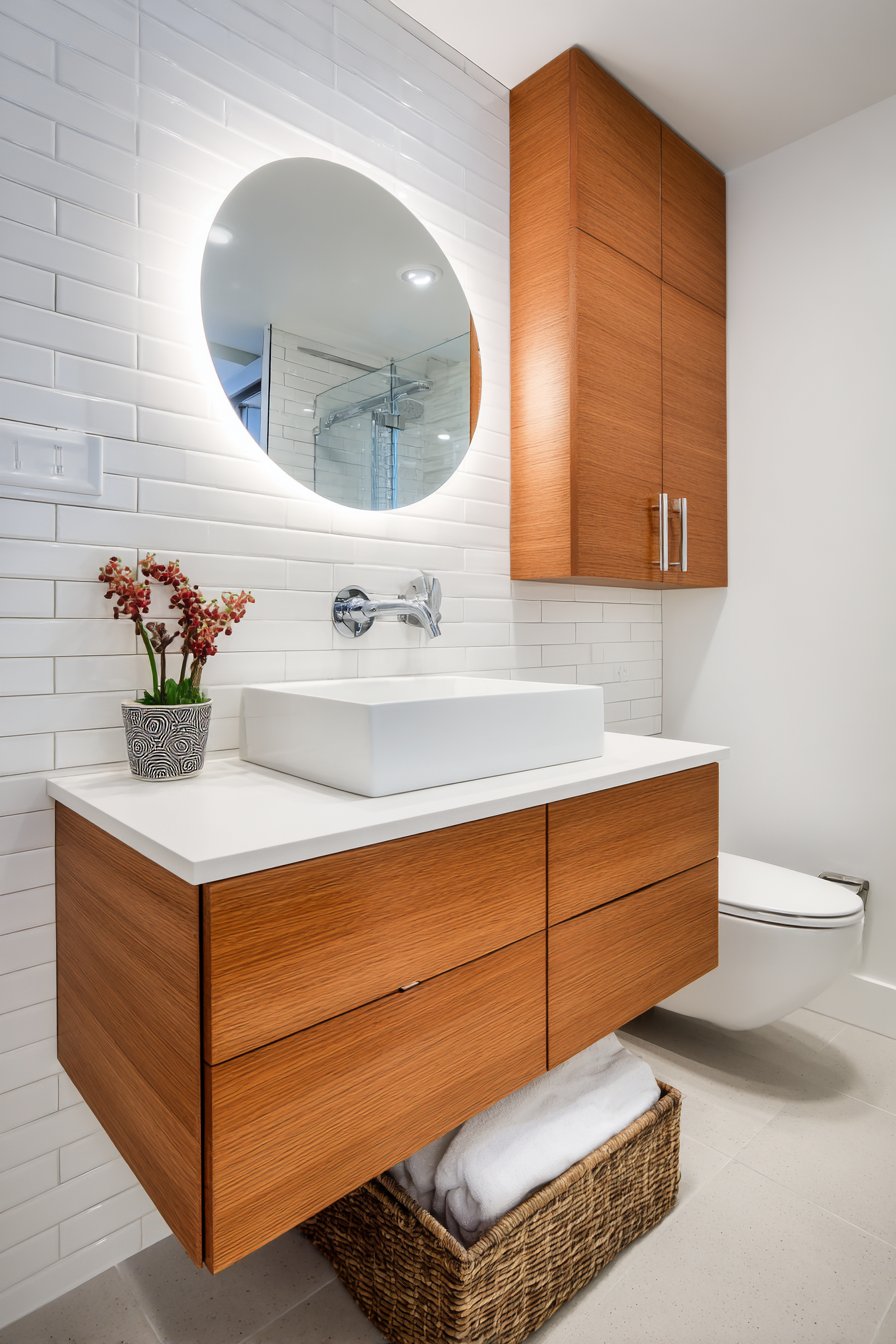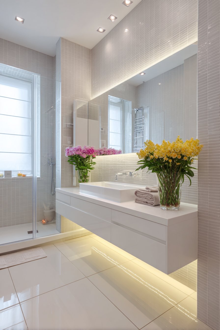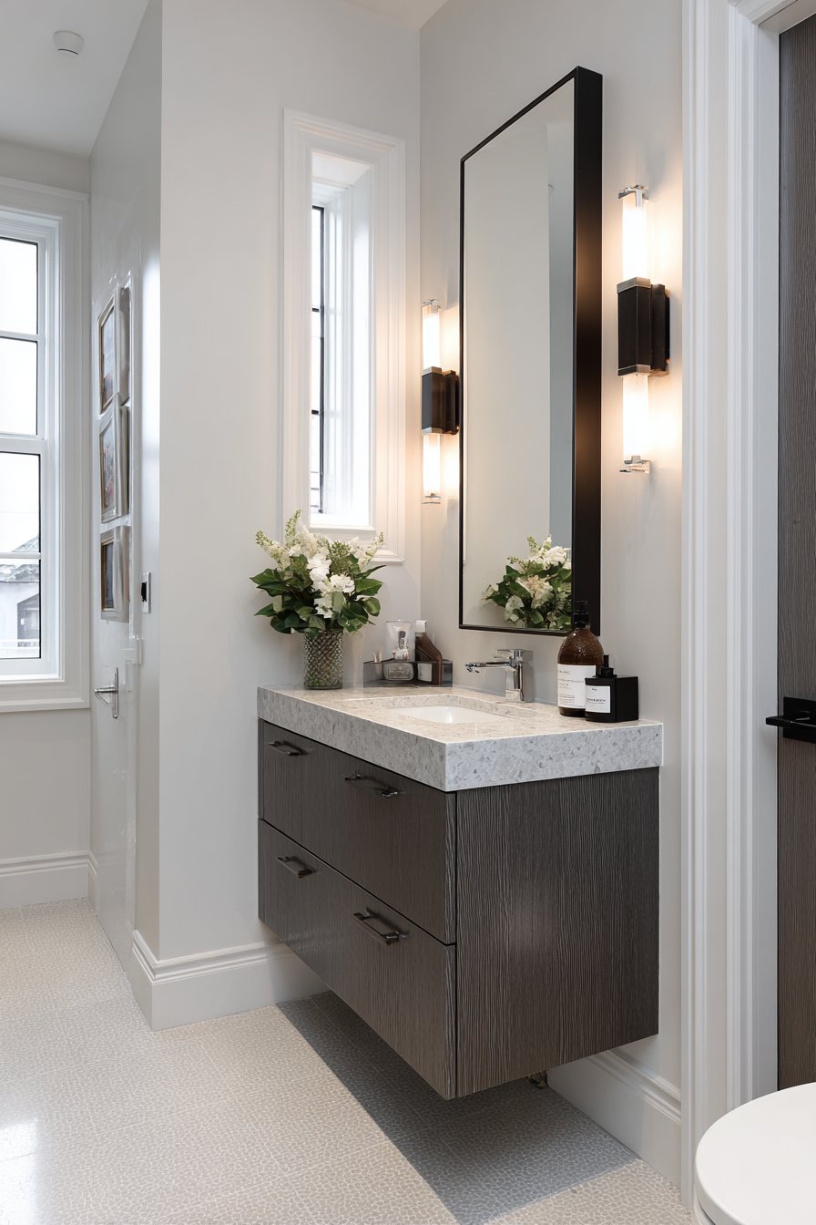 • Consider adding a subtle LED strip beneath the toilet for dramatic nighttime illumination
