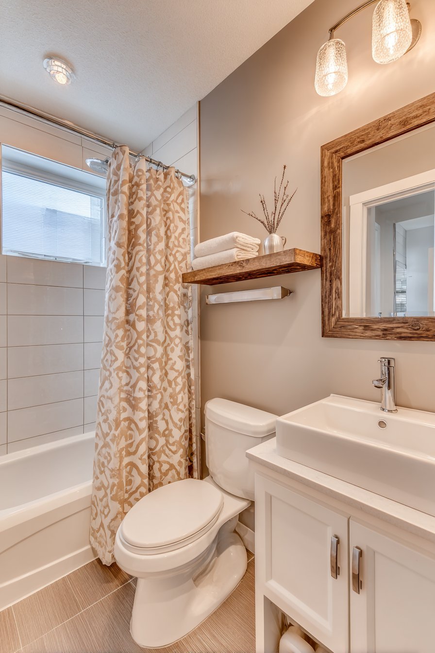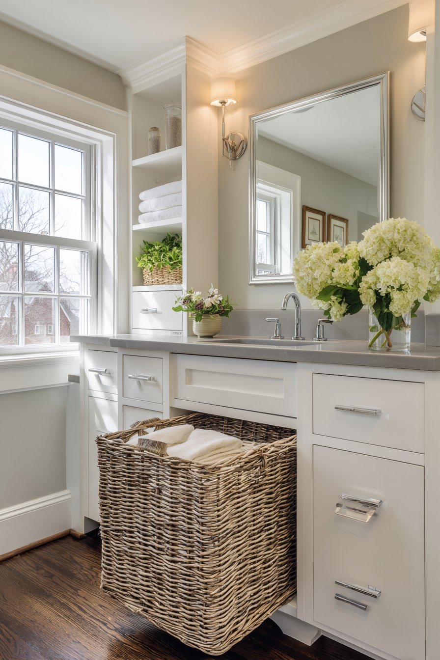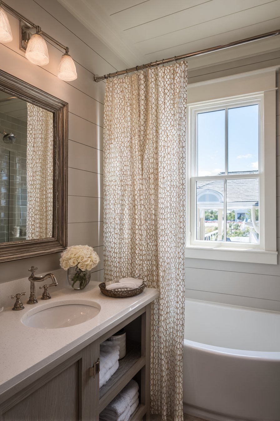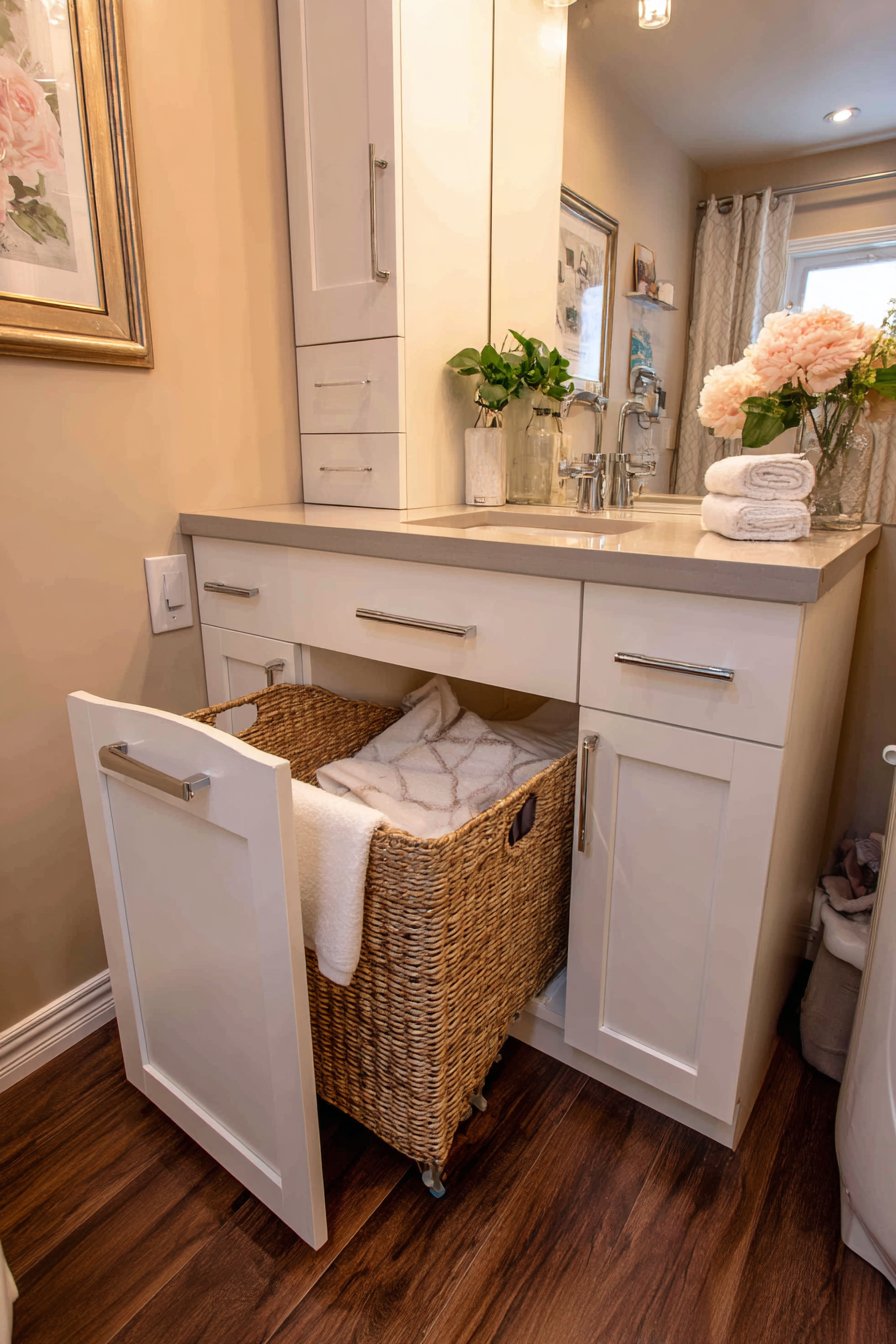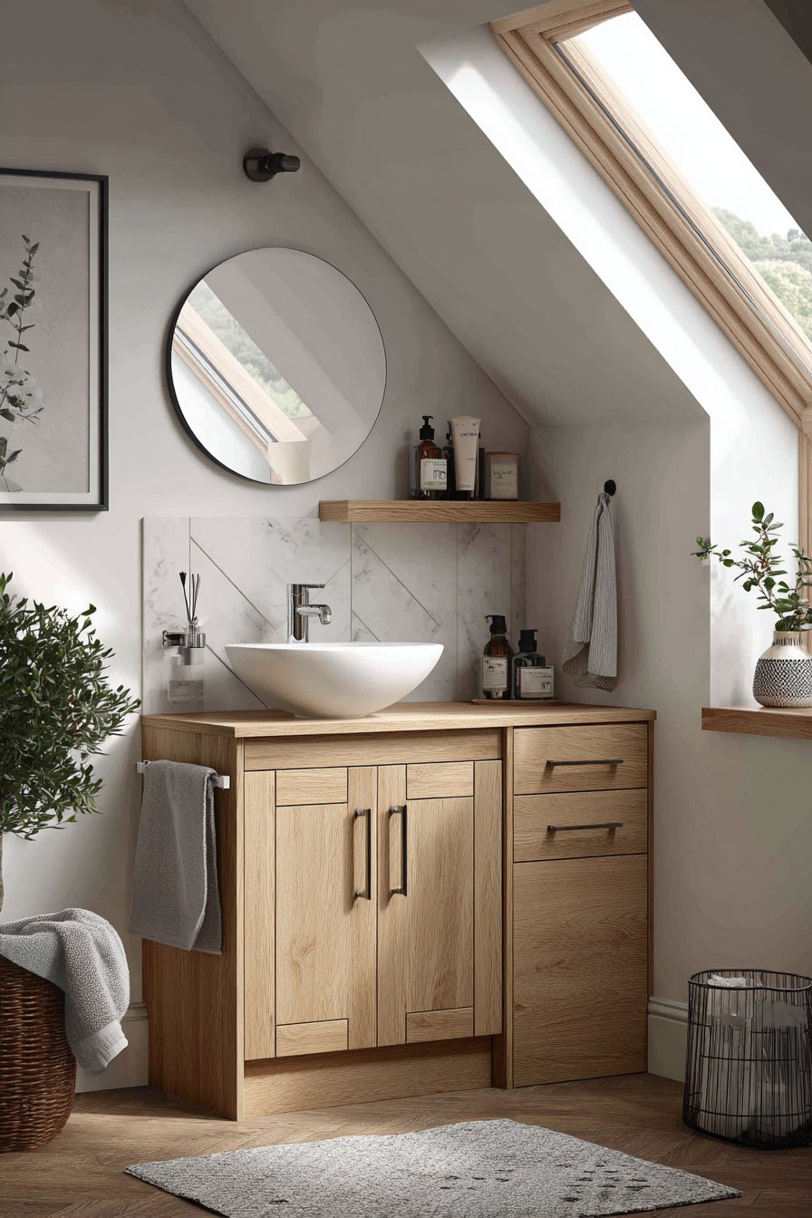 • Incorporate small plants that thrive in bathroom humidity like pothos or ferns