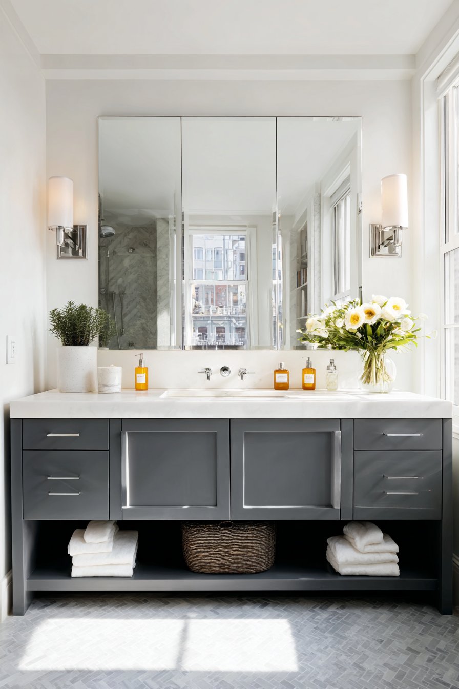 • Install mirrors with integrated lighting to reduce the need for separate light fixtures