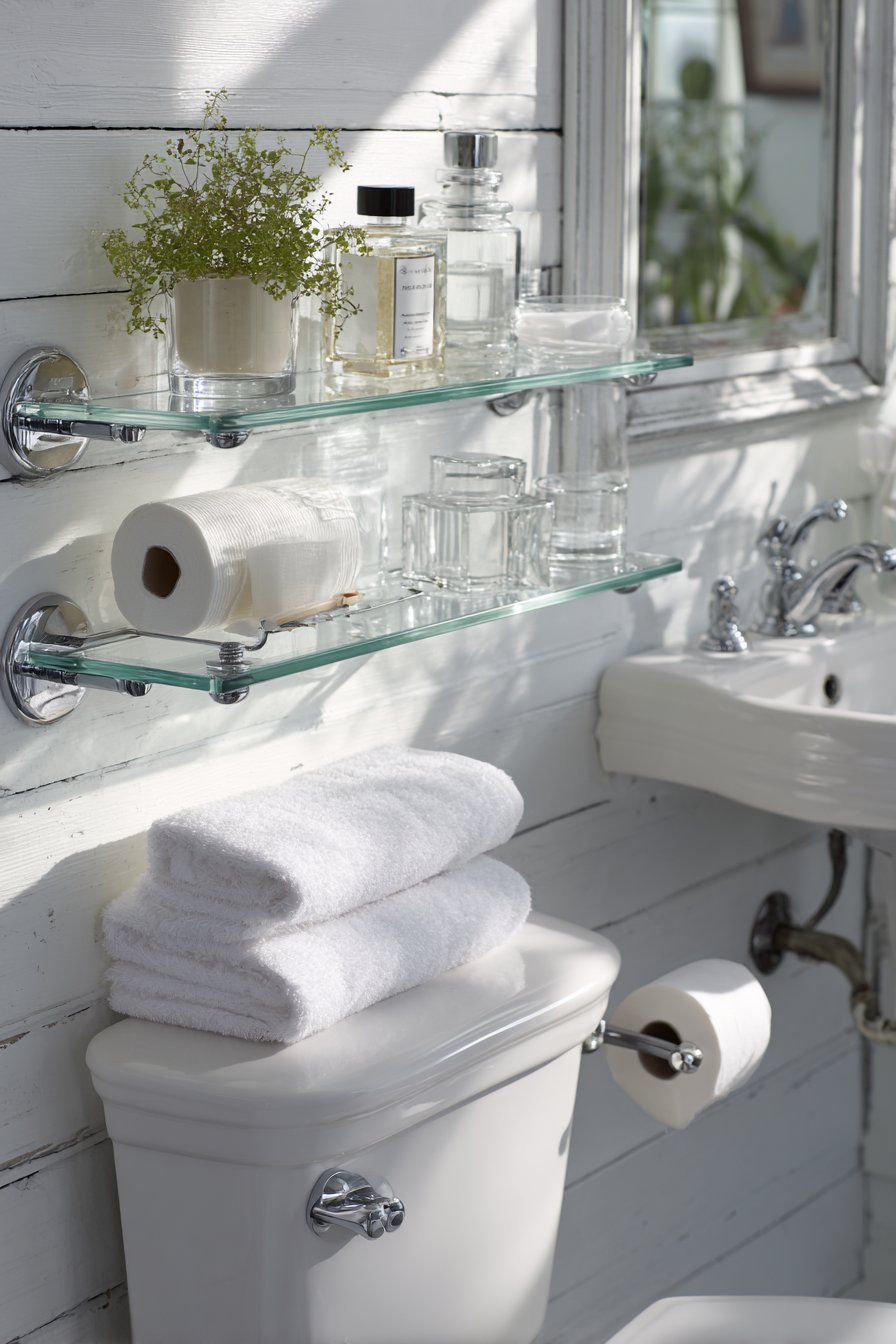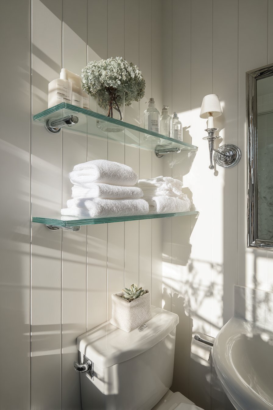 • Keep accessories minimal and store items on floating shelves rather than cluttering counters