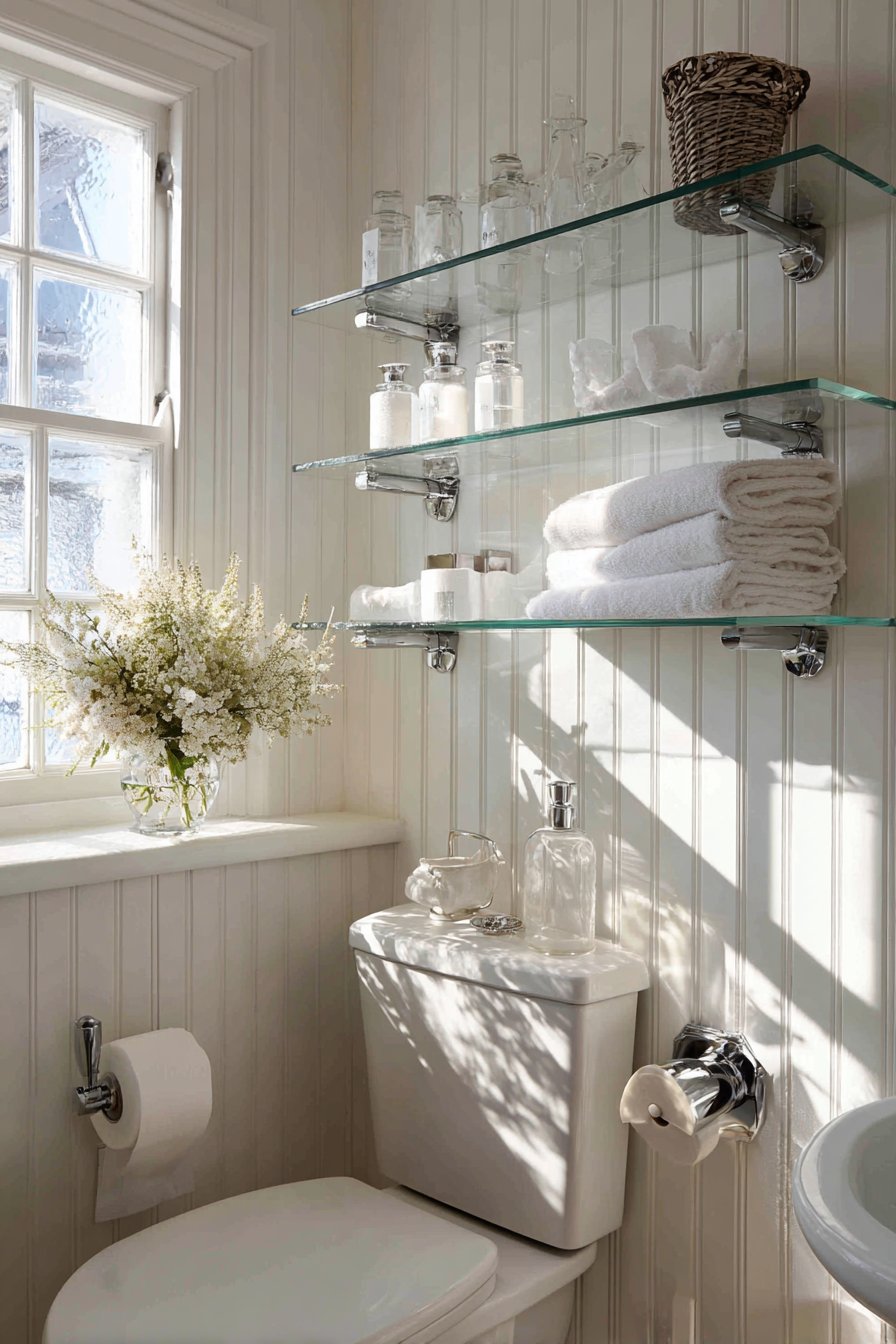 Natural lighting plays a crucial role even in the smallest bathrooms, and positioning a small window strategically can make an enormous difference in how the space feels throughout the day. The soft shadows created by natural light add dimension to an otherwise compact area, preventing the flatness that can make small spaces feel claustrophobic. A small floating shelf provides essential storage for toiletries without the visual weight of closed cabinetry, maintaining the open, airy feeling that’s paramount in tiny bathrooms.