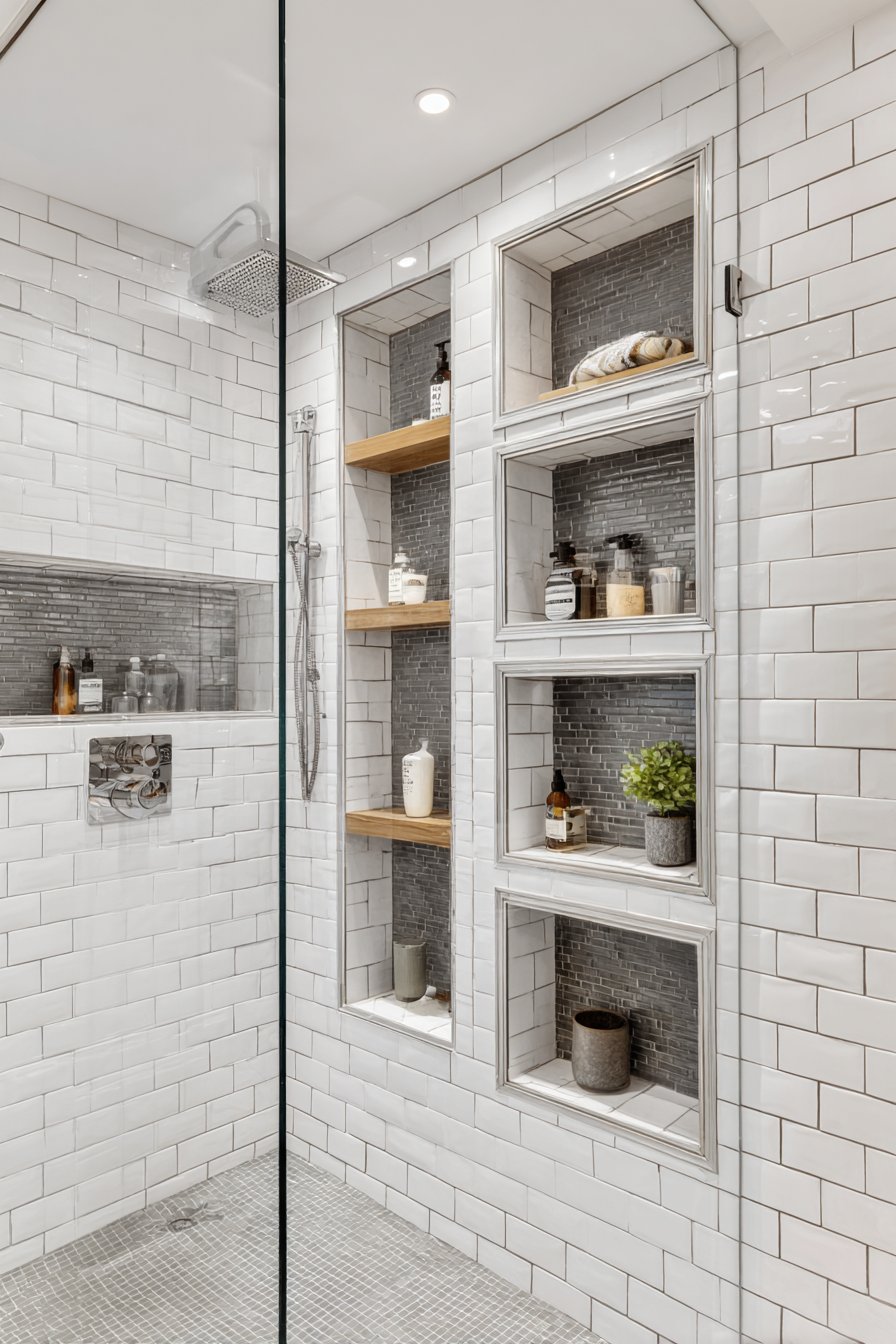 • Plan for recessed niches during initial construction or renovation to avoid protruding shelves