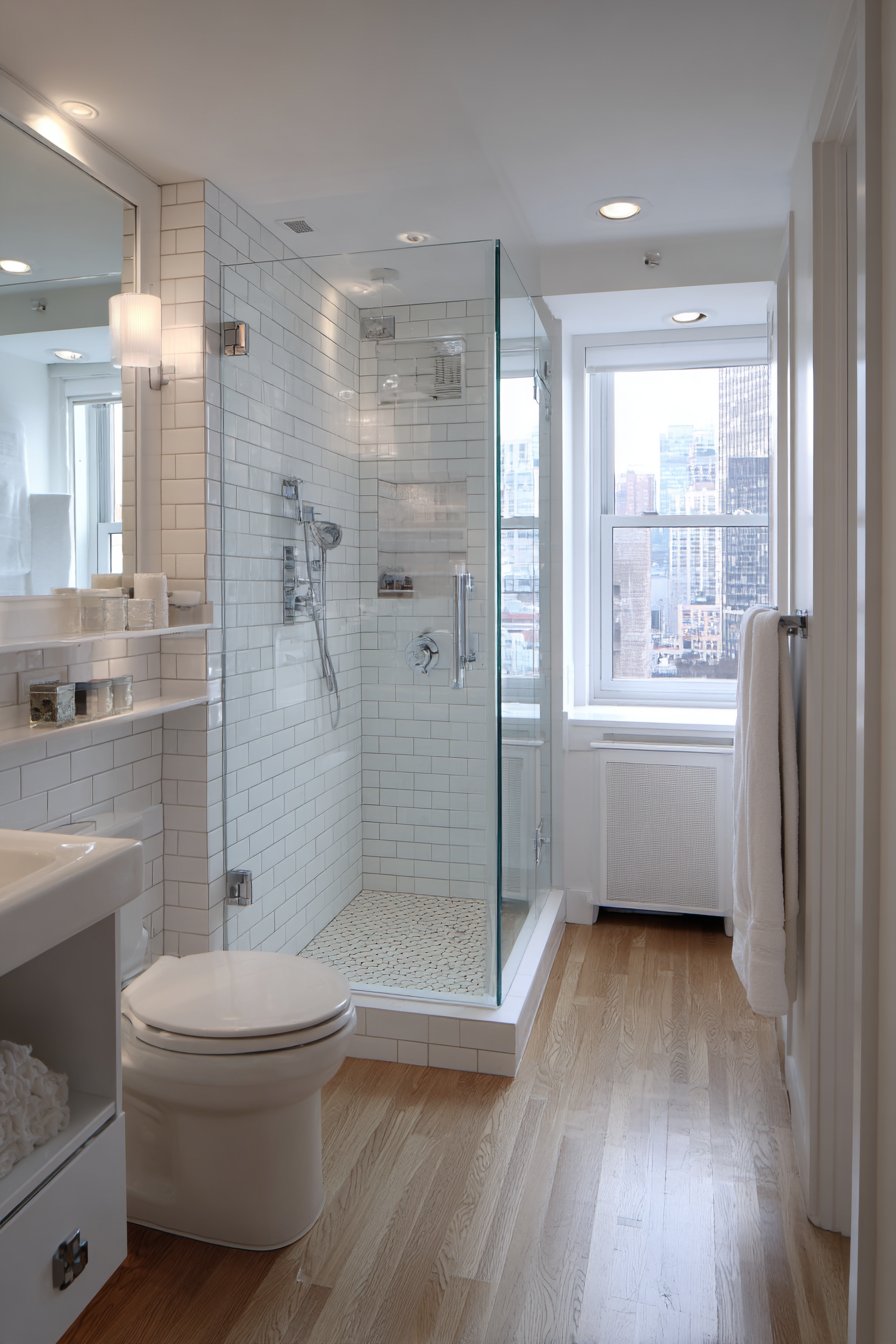 The elimination of visual barriers represents one of the most powerful strategies for expanding perceived space in tiny bathrooms, and frameless glass shower enclosures exemplify this principle perfectly. Clear glass panels with minimal chrome hardware create virtually no visual obstruction in a 40-square-foot bathroom, allowing sightlines to extend from the entry door through the shower area to the back wall, making the space feel significantly larger than its actual dimensions. This transparency becomes even more valuable when combined with white subway tiles that reflect light and maintain brightness throughout the entire bathroom.