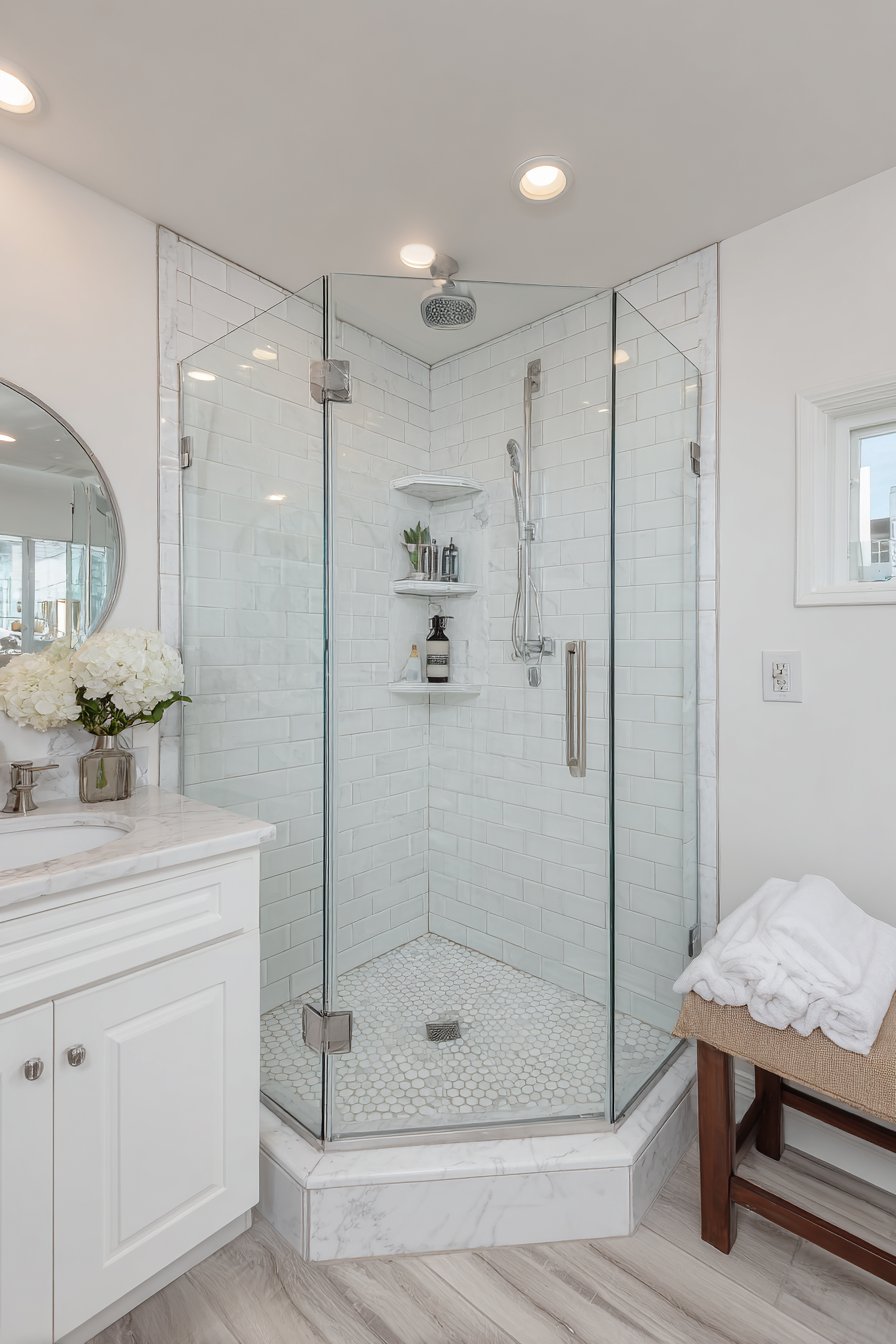 • Choose neo-angle doors that open outward to maximize interior shower space