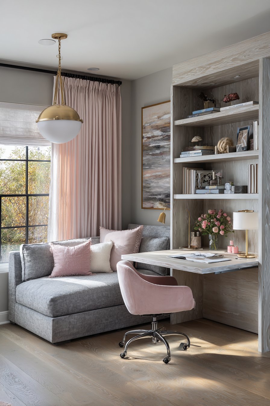 Loft beds represent innovative tiny room ideas for bedrooms by creating distinct functional zones within a single compact space. By elevating the sleeping area several feet off the ground, loft designs free up valuable floor space underneath for other purposes. This particular configuration incorporates a dedicated study area beneath the loft, complete with a compact desk featuring integrated task lighting and a comfortable office chair. The vertical separation between sleeping and working areas provides psychological boundaries that help maintain work-life balance, even in the smallest of rooms.