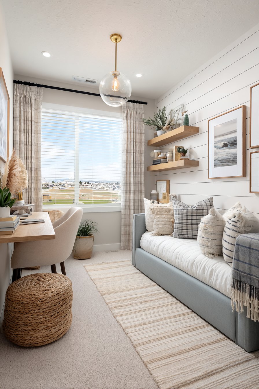 - Consider placing a small rug under the study area to define the workspace and add comfort
