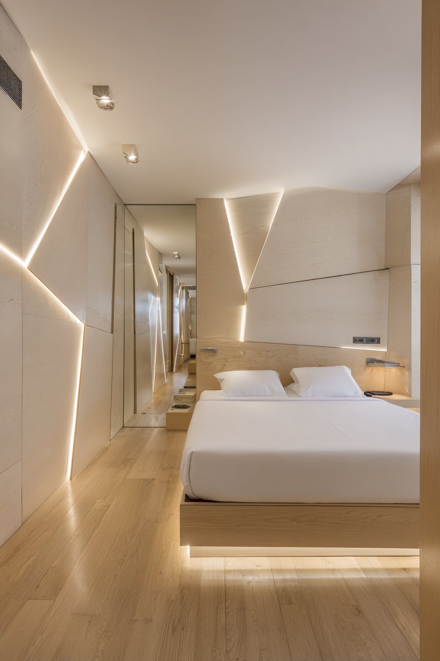 - Install wall-mounted lighting to eliminate the need for nightstands and table lamps