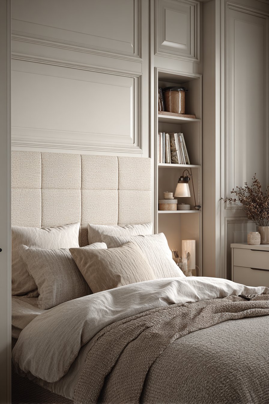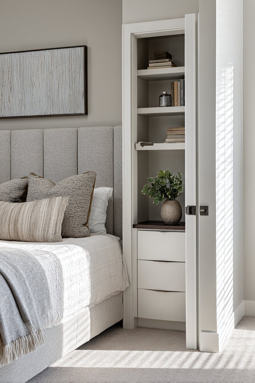 Multifunctional furniture continues to dominate tiny room ideas for bedrooms, and headboards with integrated storage exemplify this trend. These designs incorporate small shelves, hidden compartments, and specialized sections for books, phone charging, and nighttime essentials directly into the headboard structure. This consolidation eliminates the need for separate nightstands, freeing valuable floor space while keeping necessary items within easy reach. The headboard becomes a command center for the sleeping area, organizing everything from reading materials to charging devices in one centralized location.