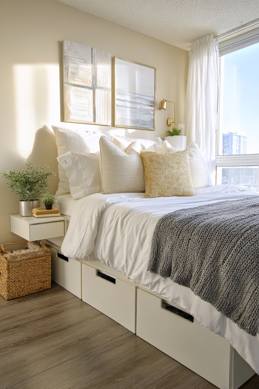 - Incorporate throw pillows that can be stored in the drawers when not in use