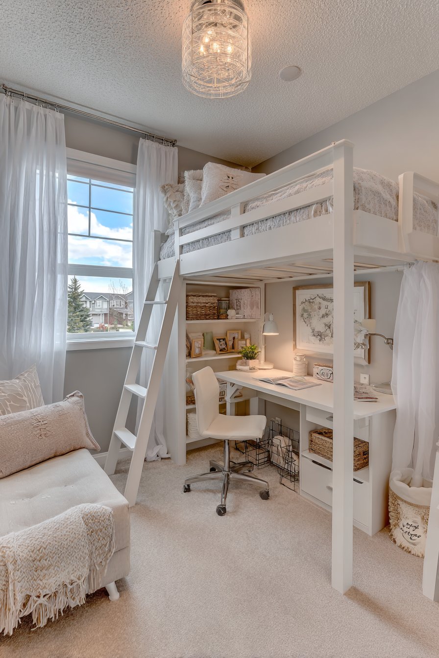 - Incorporate wire baskets or hanging organizers under the loft for books, supplies, and accessories