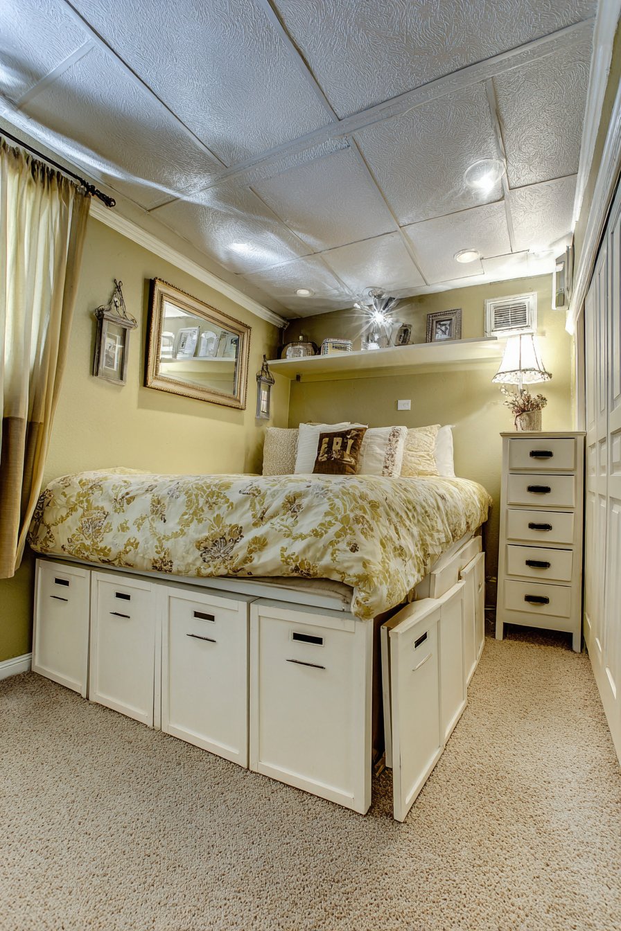 Platform beds with built-in storage drawers underneath offer one of the most practical tiny room ideas for bedrooms, combining essential sleeping space with substantial hidden storage capacity. This design elevates the mattress on a solid platform base that incorporates multiple deep drawers accessible from the sides of the bed. Unlike traditional bed frames that waste the valuable space beneath the mattress, platform storage beds transform this area into organized compartments perfect for storing clothing, extra linens, seasonal items, or personal belongings. The drawers typically feature smooth-gliding mechanisms and can be configured with dividers or organizers to maximize their utility.