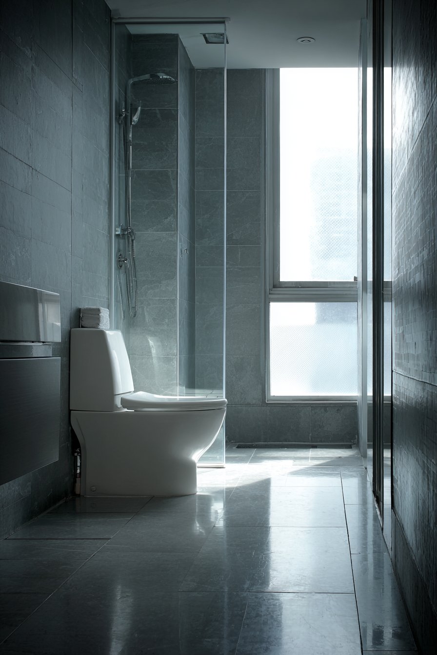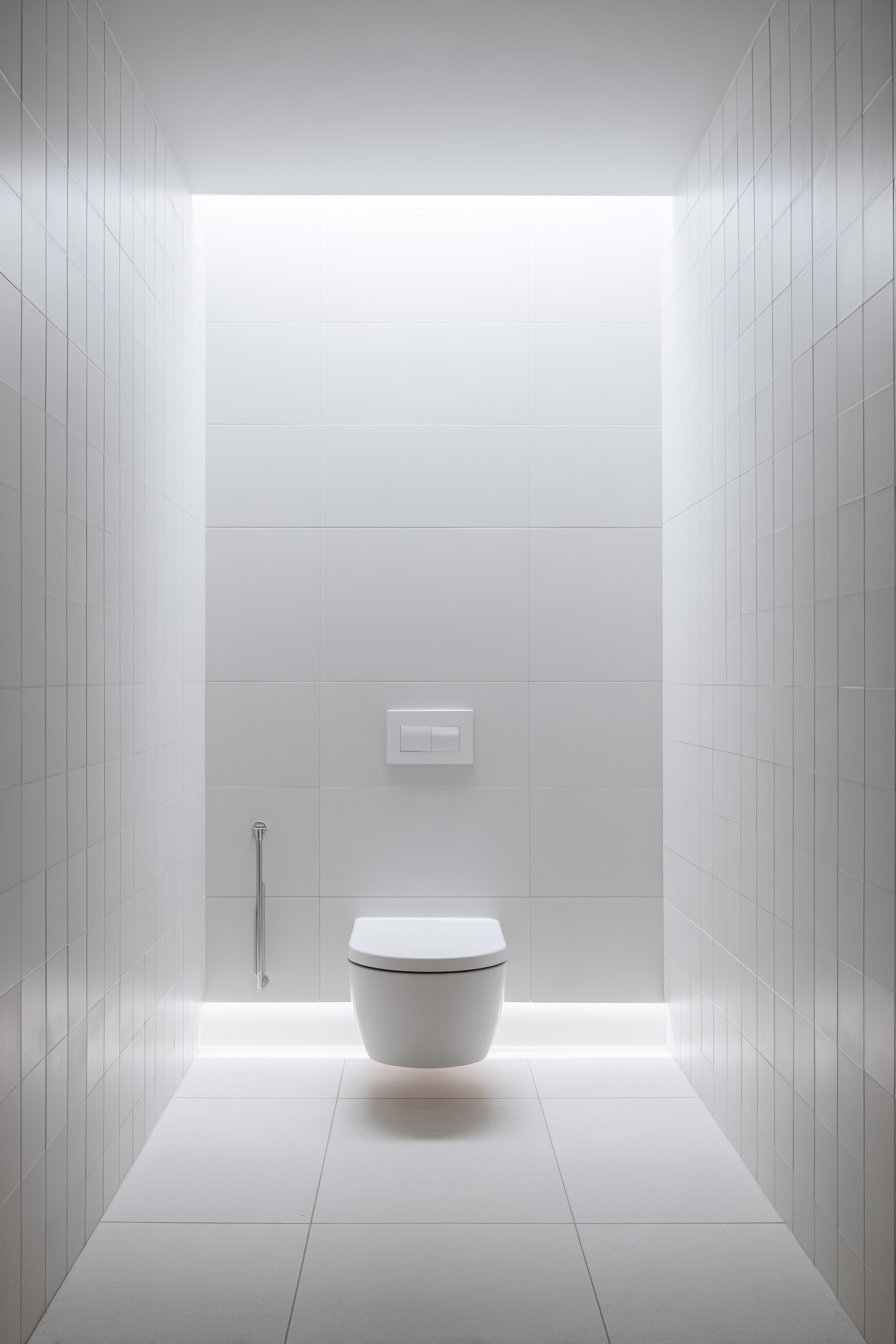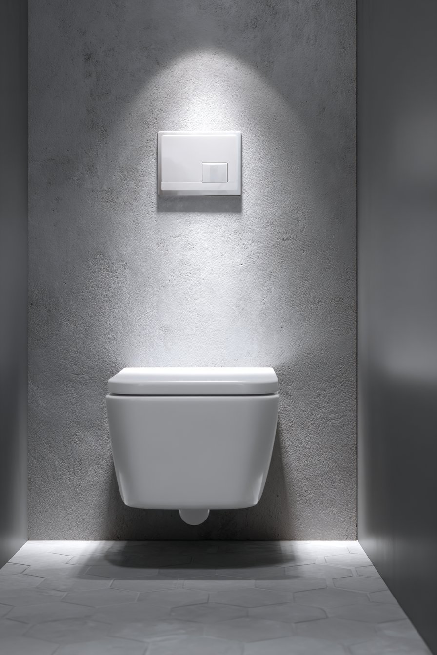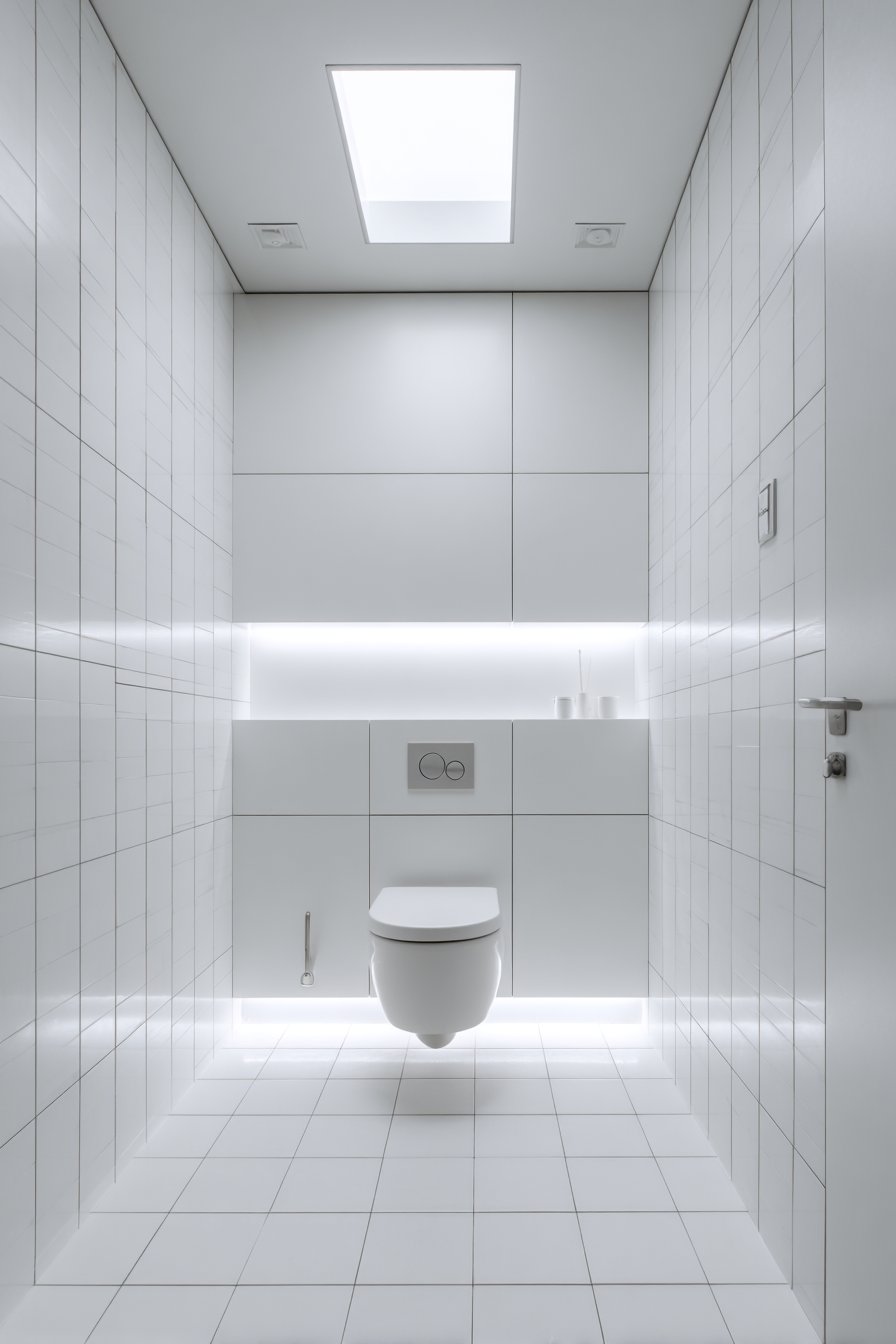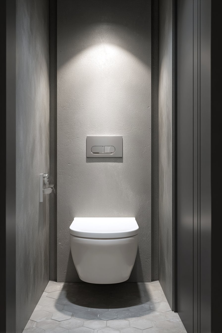 Lighting plays a crucial role in elevating this minimalist concept. Soft recessed lighting creates subtle shadows that emphasize the clean lines and geometric forms of the space, adding depth and dimension without introducing additional fixtures or visual complexity. The interplay of light and shadow becomes part of the design itself, highlighting the quality of materials and precision of installation. This approach to toilet design proves that simplicity, when executed with care and attention to detail, can be extraordinarily elegant and timeless.
