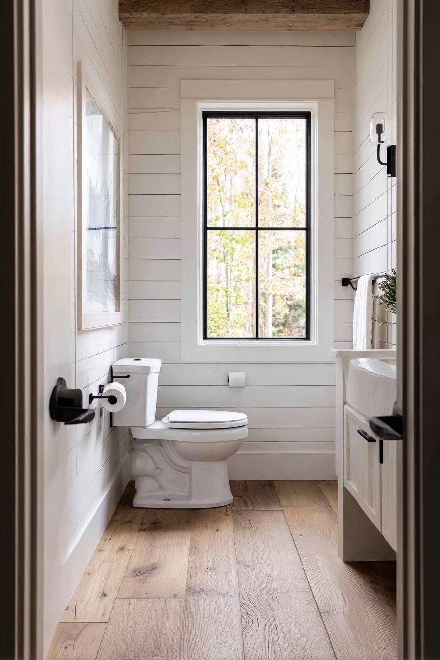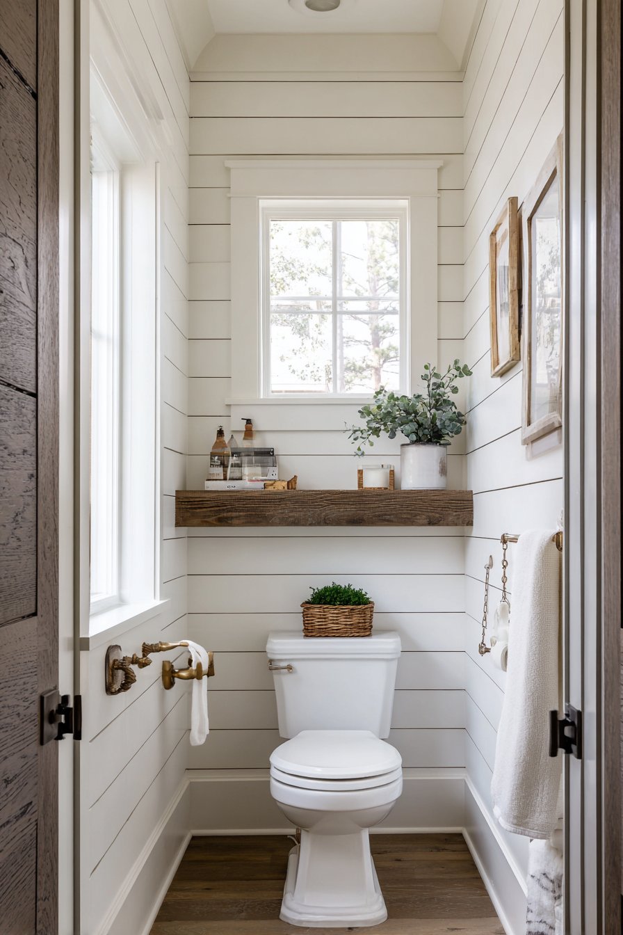 - Install shiplap walls painted in warm neutrals for farmhouse character