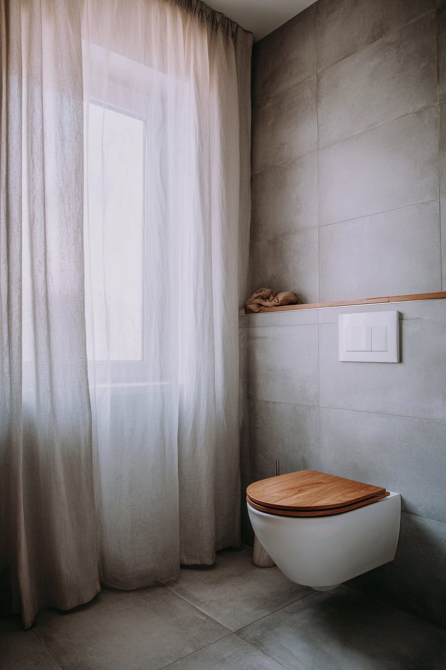 - Add wood toilet seats to introduce natural warmth to white ceramics