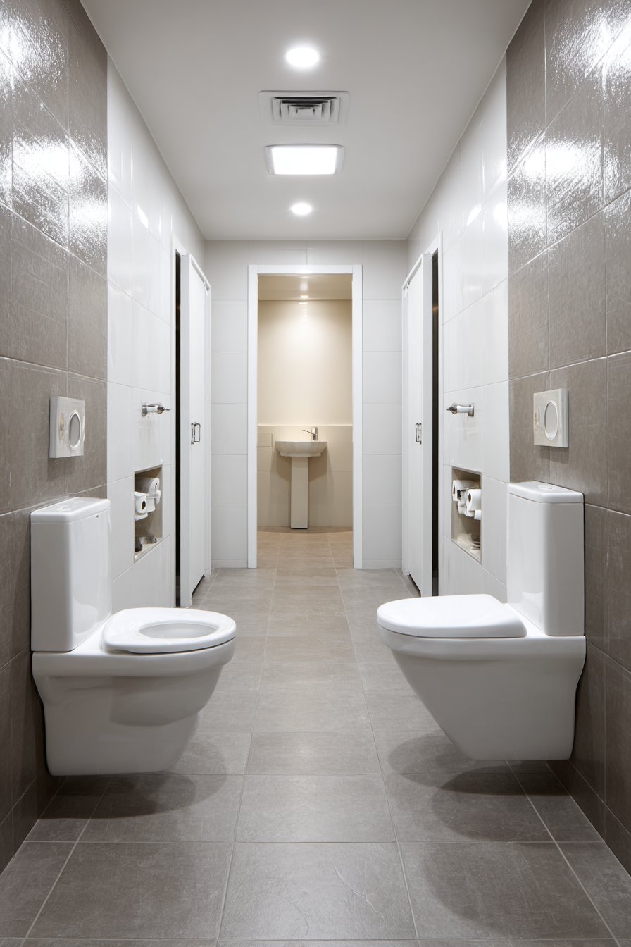 - Install wall-mounted toilets to maximize floor space and simplify cleaning routines