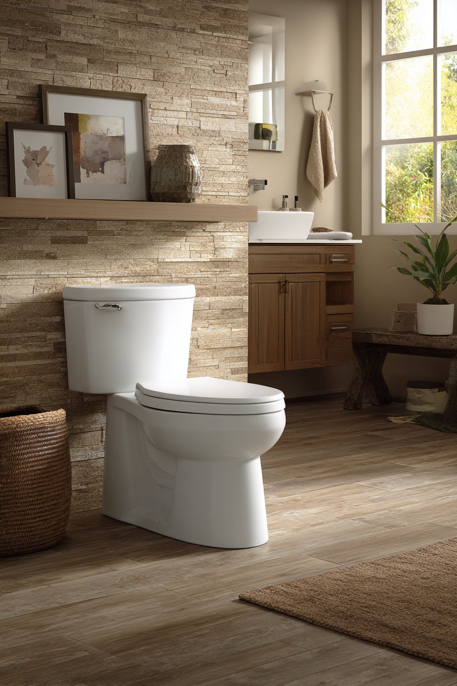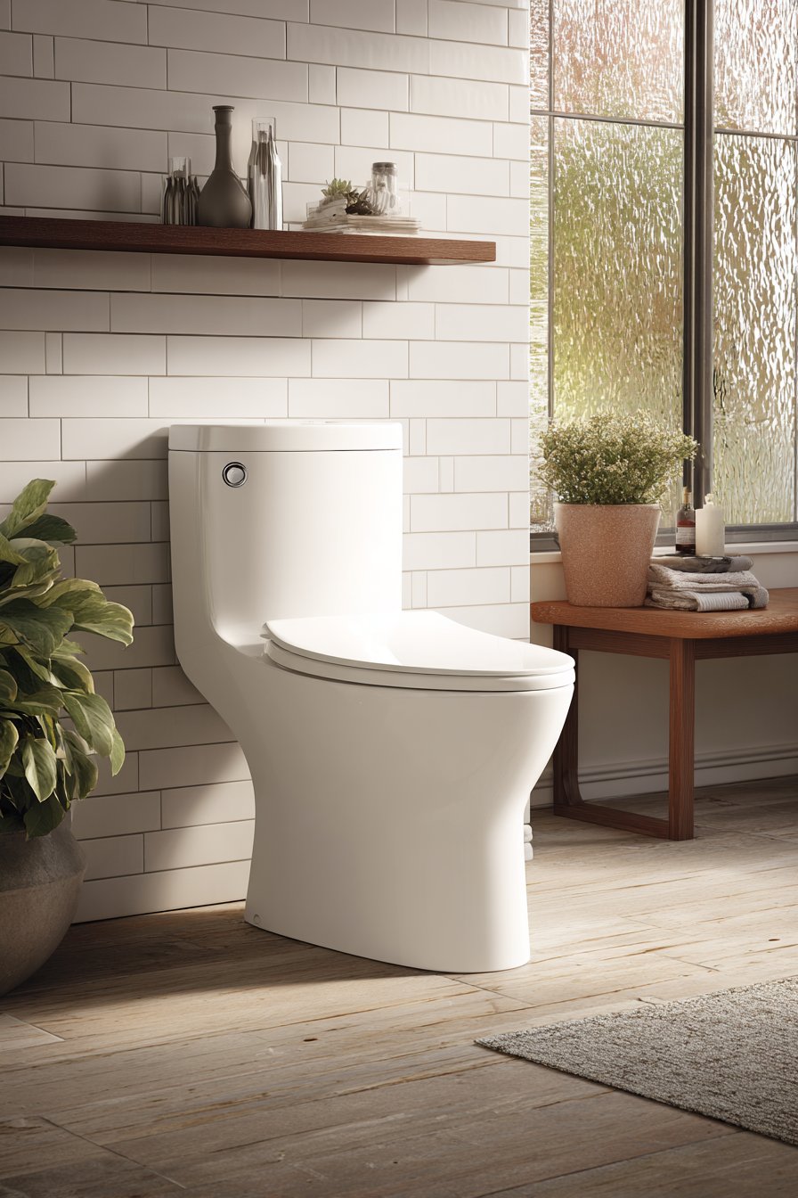 - Choose one-piece toilets with clean lines that avoid both ornate and stark extremes